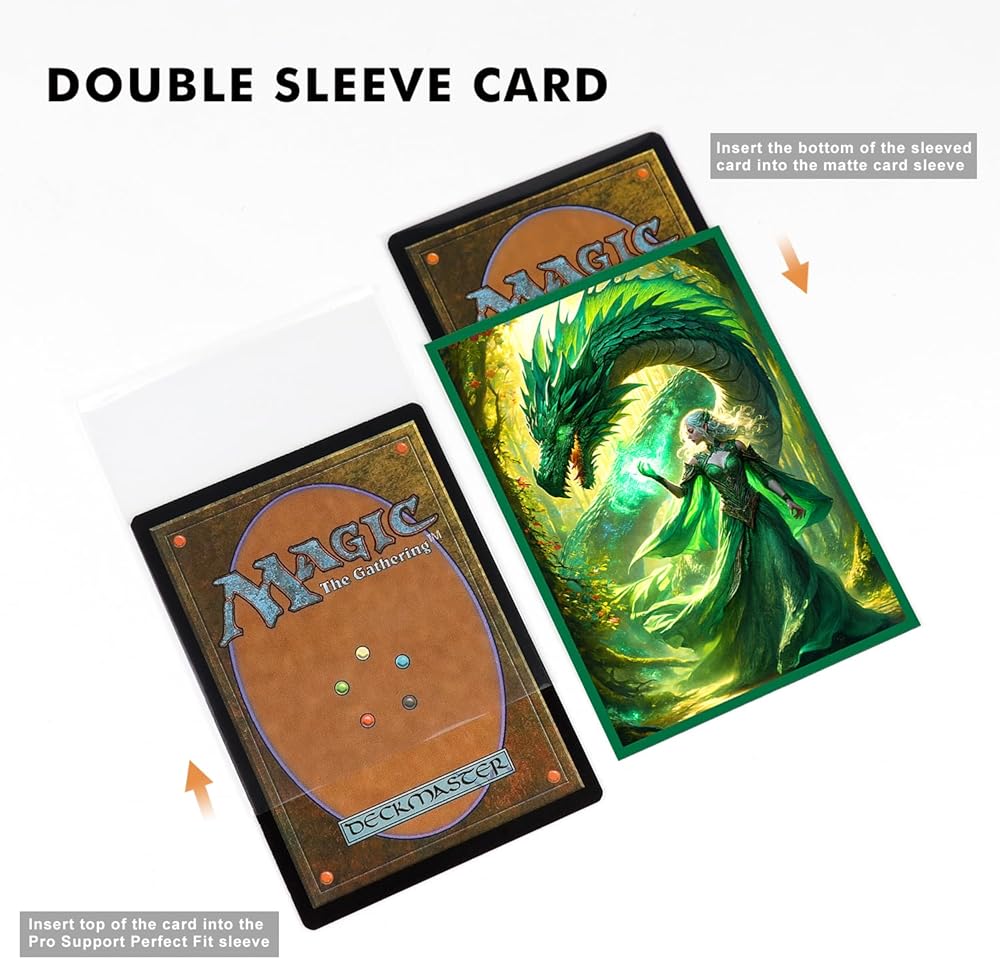 - 100 قطعة من أكمام البطاقات الفنية مع 100 قطعة من الأكمام الملائمة تمامًا، فائقة الوضوح، خلفية غير لامعة، نفخة ناعمة، كم مزدوج لحماية أفضل للبطاقات.