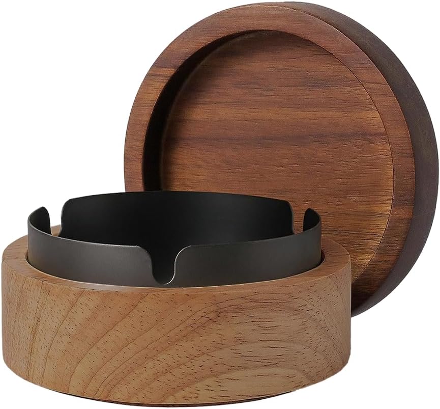 Morden Style: Wonderful elegance design makes our wooden ashtray with removable lid very modern and stylish to fit seamlessly into any decor. The lid covered ashtray for smokers looks like a decoration, and you wouldn't even guess it's an ashtray
