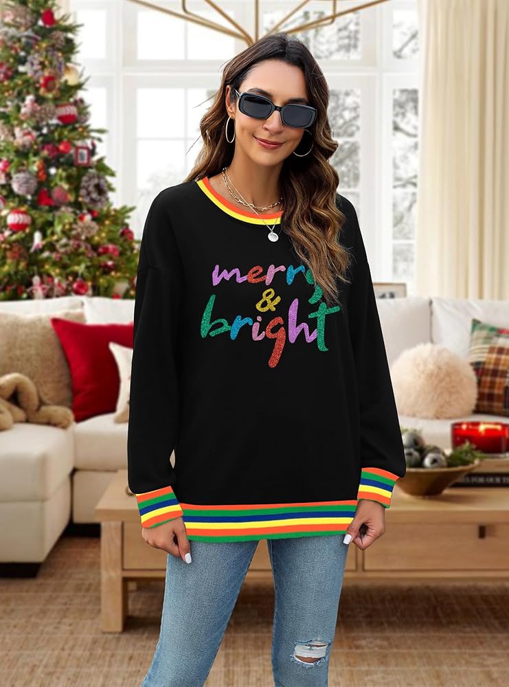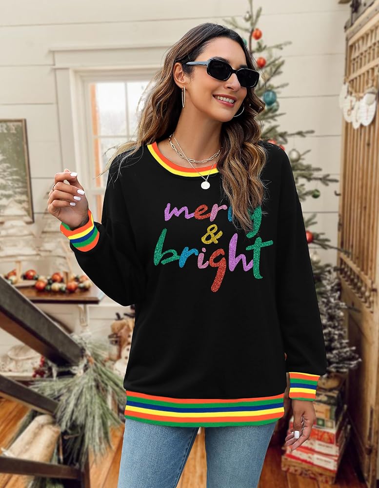 Features: Long sleeve christmas shirts for women, christmas sweatshirt for women, merry and bright sweatshirt, merry sweatshirt, christmas sweatshirts for women, cute christmas sweaters.