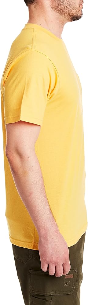 Made of cotton poly soft jersey knit fabric, this is a great basic short sleeve crew neck one pocket tee. Wear it alone or under a layer. Features quick dry wicking fabric to keep you cool and comfortable; tag less for comfort.