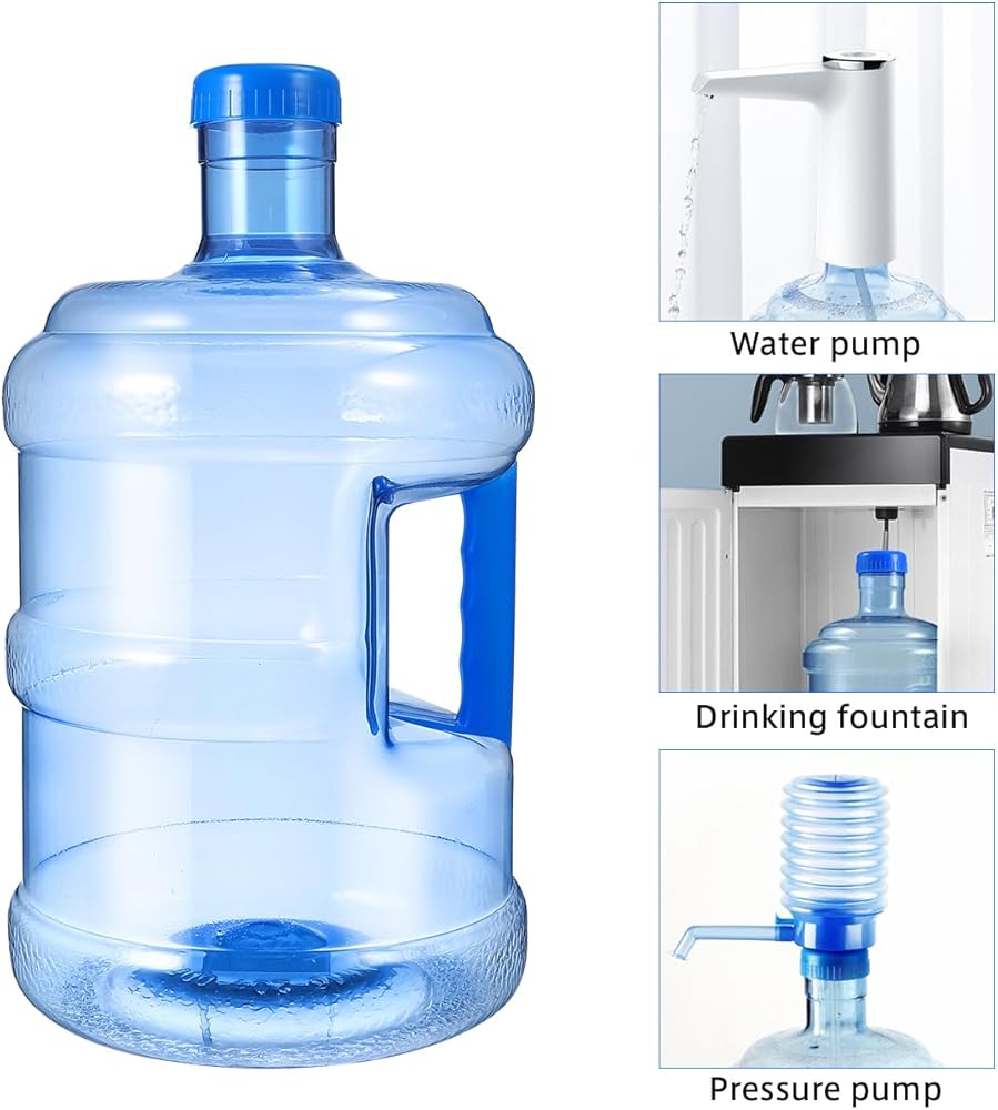 FUNCTIONAL DESIGN - 1.3 gallon large capacity, 5 L water container has wide mouth design, comfortable and stable handle, the gallon water bottle can be used repeatedly, refillable gallon water jug.