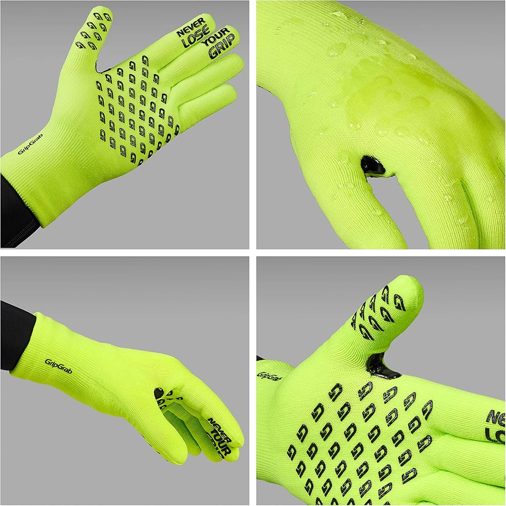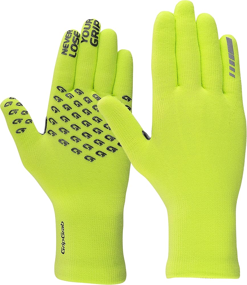 The GripGrab Waterproof Knitted Winter Gloves are your go-to companion to have dry and warm hands when cycling on chilly damp mornings. These versatile gloves are made from an insulating knitted fabric with a breathable waterproof membrane; they provide a soft and insulating layer to keep windchill and precipitation from freezing your fingers. With a simple gripper print on the palms, wear reinforcements, and subtle reflective details; they will help keep you in control and help your hand signals stand out in the dark. The ideal gloves for style and comfort in changeable weather conditions that are typically found in spring and fall. Product Details: Material: Outer material: Polyamide 90%, Elastane 8%, Rubber 2%. Inner: Acrylic 70%, polyamide 20%, elastane 8%, rubber 2%. Colours: Black, Navy Blue and Yellow Hi-Vis. Sizes: XS/S, M/L and XL/XXL Please refer to the size chart in the product images for more information. These gloves are rather tight cut, especially on the fingers. If you are unsure about the size or if a looser fit is preferred, please choose one size larger. After repeated wear, the gloves expand a little and become more supple without wearing out. Box contents: 1 pair of GripGrab Waterproof Knitted Winter Cycling Gloves