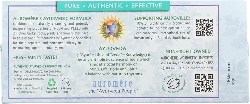 Auromere Ayurvedic Herbal Toothpaste, Classic Licorice Flavour - Vegan, Natural, Non GMO, Fluoride Free, Gluten Free, with Neem & Peelu (4.16 oz), 2 Pack