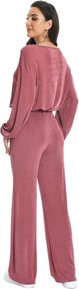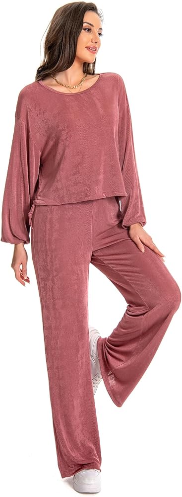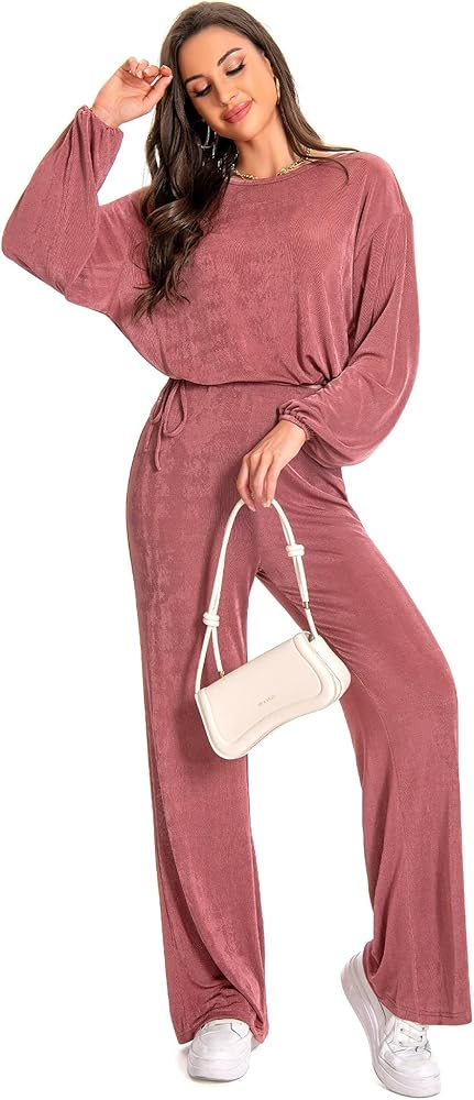 Style: Women Two Piece Sets / Fall Outfits / Crew Neck Loose Long Sleeve Top / Sexy Loose Top / Cap Long Sleeve Shirts / Tie Knot Tunic Top / Elastic Midi High Waist Wide Leg Pants / Casual Long Trouser / Loose Fit Tracksuits / Solid Color Matching Sets / Cute Vintage Style / Suit For Spring Fall