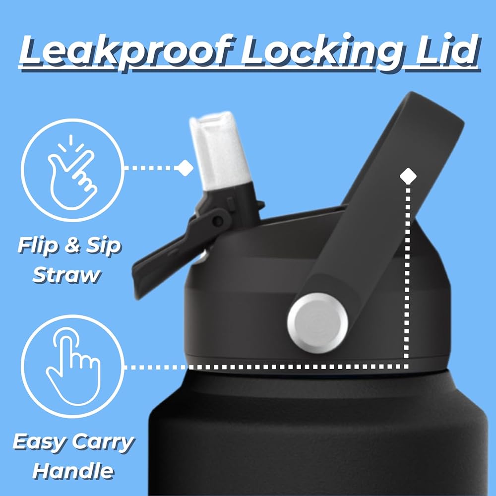 Leakproof Locking Lid: Ensures straw protection from contaminants, complete with a handy carrying loop for convenience.