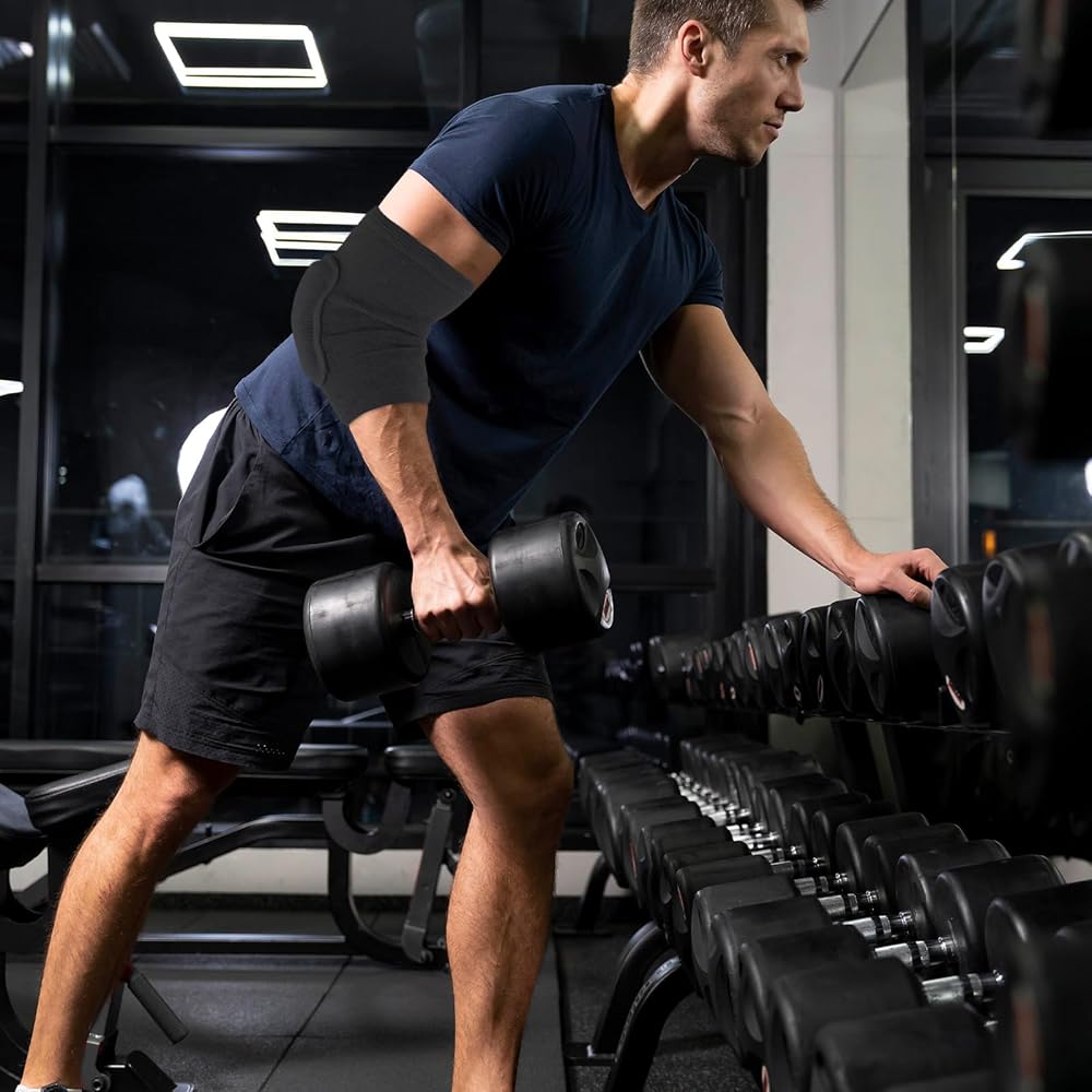 Premium Material: Our elastic compression elbow sleeve is the best choice for you! Comfortable and flexible fabric, it can keep cooling after sweating. There is a thick sponge pad on the elbow joint to protect you while the exercise is helping you recover from the injured elbow