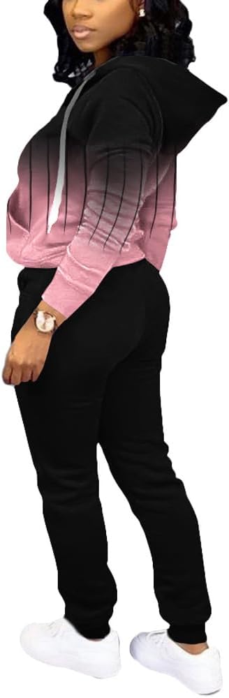 Features: Two Piece Outfits For Women, Gradient,Long Sleeve, Hoodie, Zipper, Drawstring, Tops And Pant Sets With Pockets.