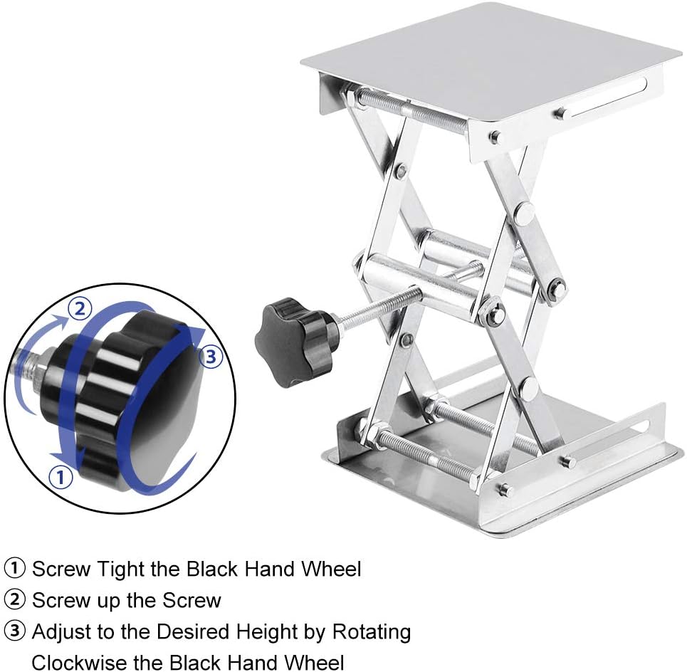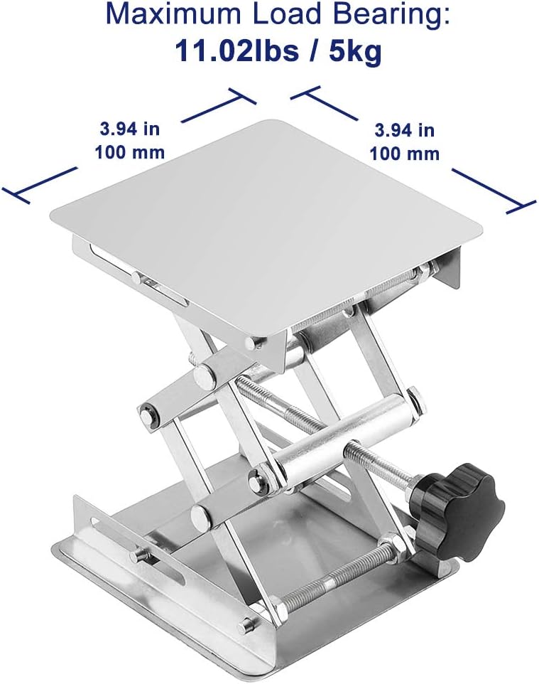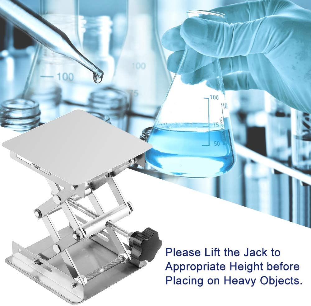 Labasics 4 x 4 inch Lab Scissors Jack, 100 x 100 mm Stainless Steel Laboratory Support Jack Platform Lab Lift Stand Table, Expandable Lift Height Range from 45 mm to 150 mm, Support Weight 5KG