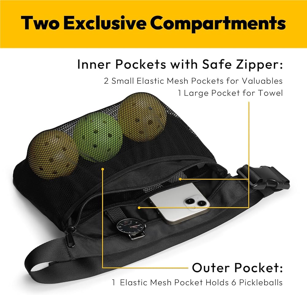 Versatile Sports Bag: Beyond Pickleball, it also serves as a golf accessories bag, table tennis training bag, baseball pouch, and a sports fanny pack for running, travel, or outdoor activities.