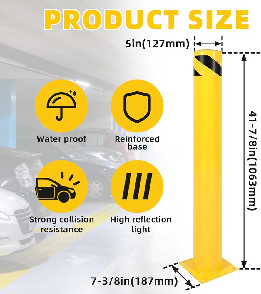 Superior Performance: The Safety Bollard is made of durable steel with a powder-coated finish. Therefore, the traffic bollard has higher hardness, more impact resistance, is not easy to oxidize, rust or fade, can be used outdoors for a long time, and can withstand severe weather conditions. Dimensions: 41-7/8in x 5in.