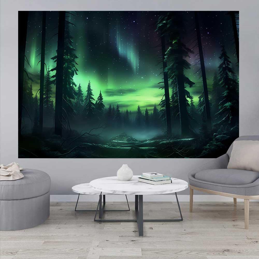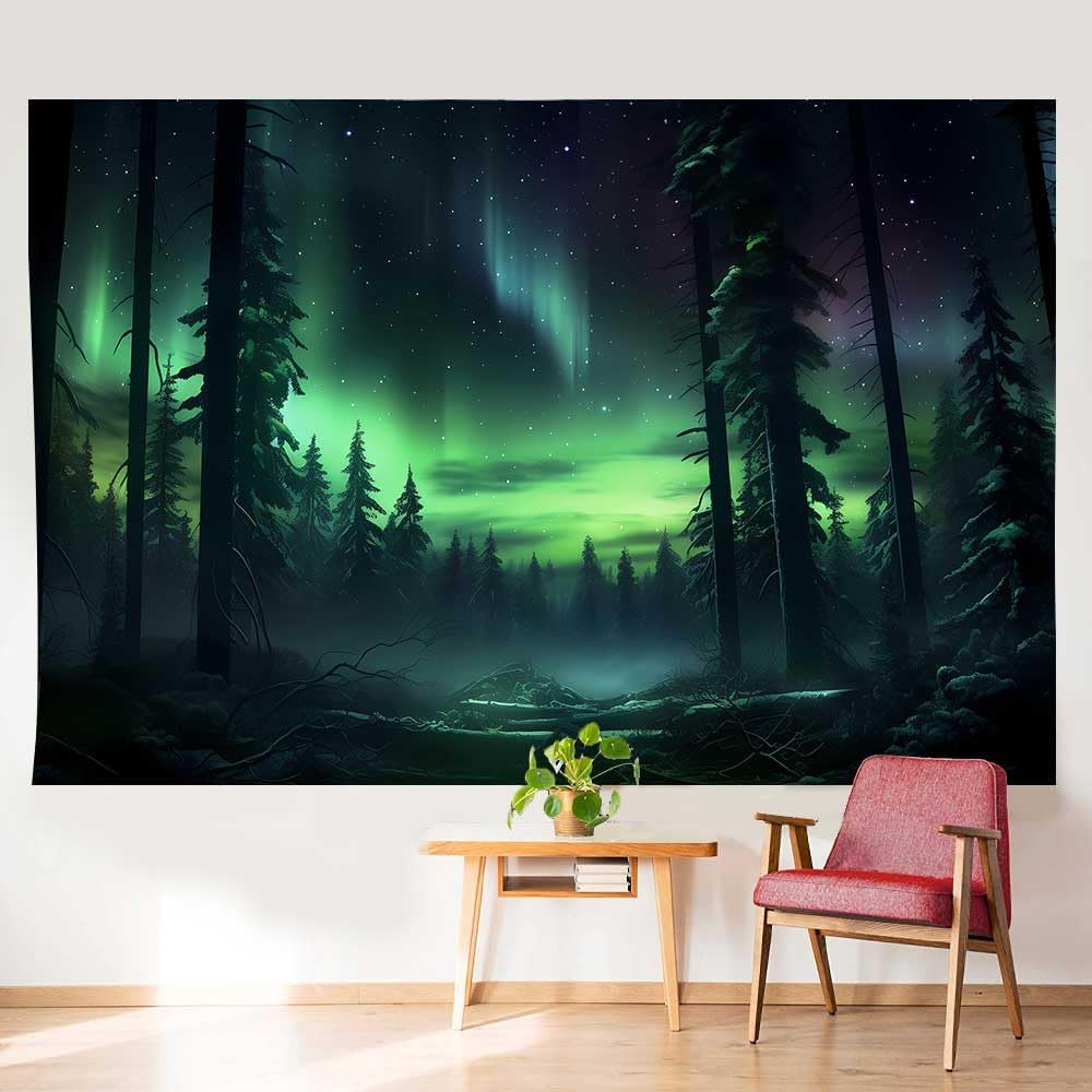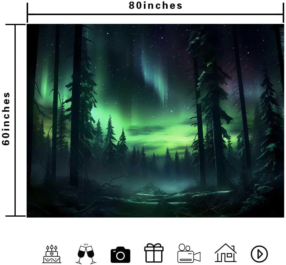 Ine Ive Northern Lights Forest Tapestry Psychedelic Aesthetic Starry Night Nature Landscape Tapestry Wall Hanging 80x60Inch Flannel Trippy Galaxy Space Trees Poster for Home Decor
