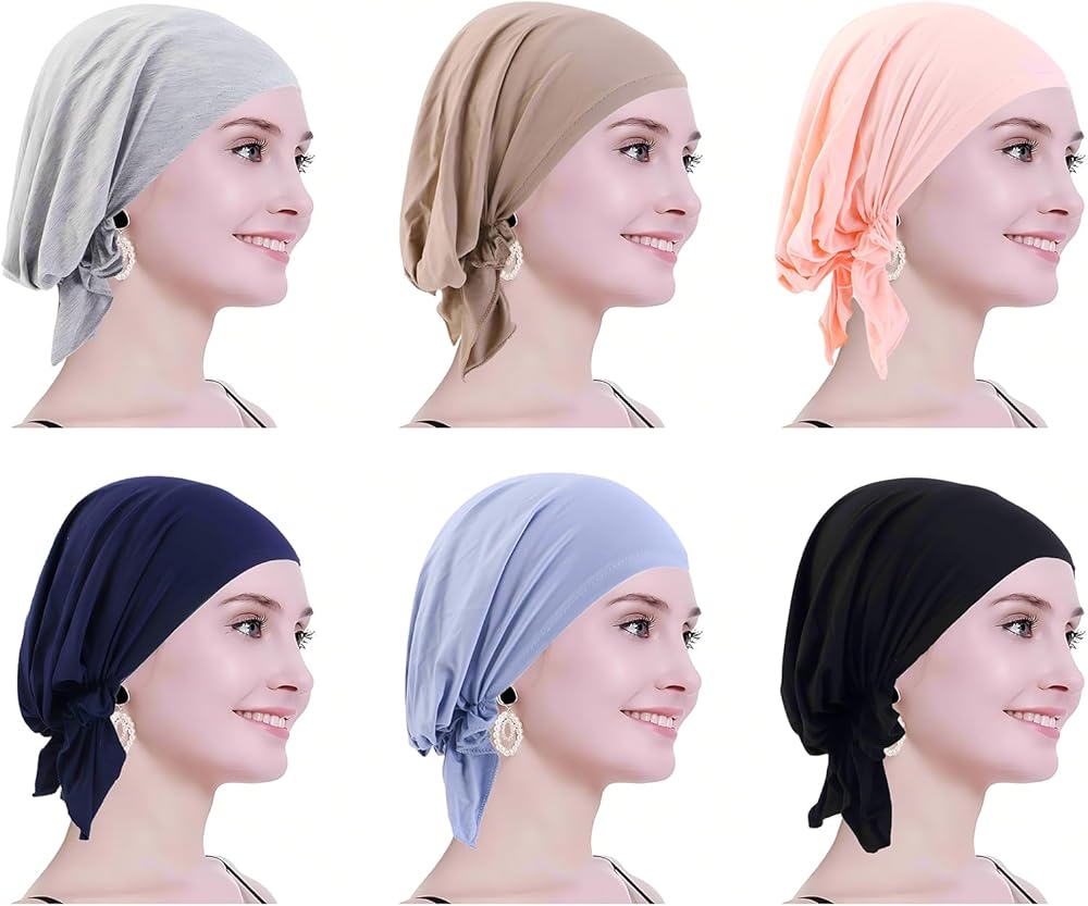 6 Pieces Solid Women Chemo Hat Turban Beanie,Pre Tied Chemo Head Scarf Beanie Skull Cover Cap for Women Hair Loss
