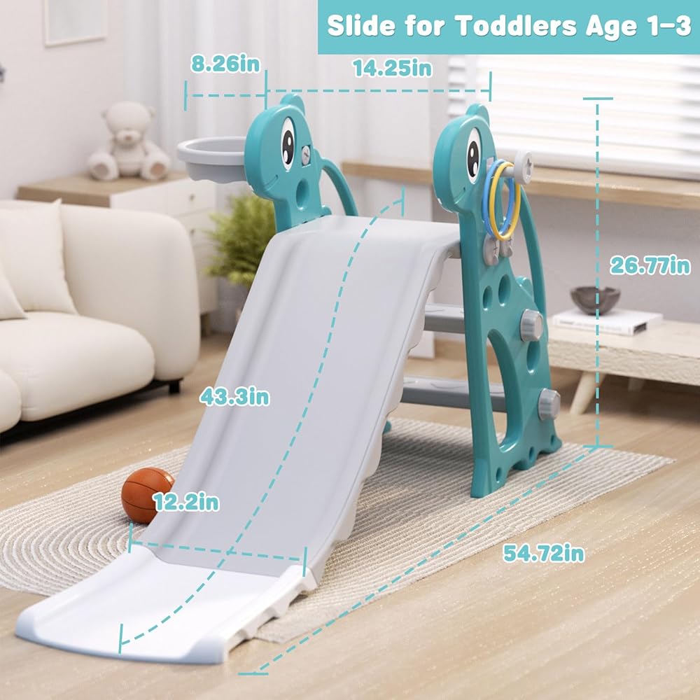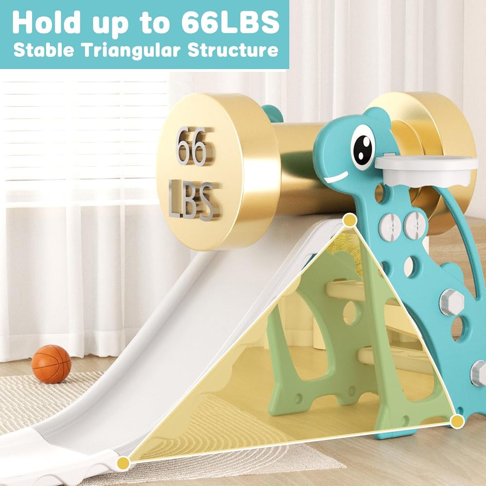 Stable Non-Slip Base: Designed with a robust triangular structure and widened base for exceptional stability, this1-4years old toddler slide boasts a weight capacity of 66 lbs, ensuring a safe and secure playground for your little one.