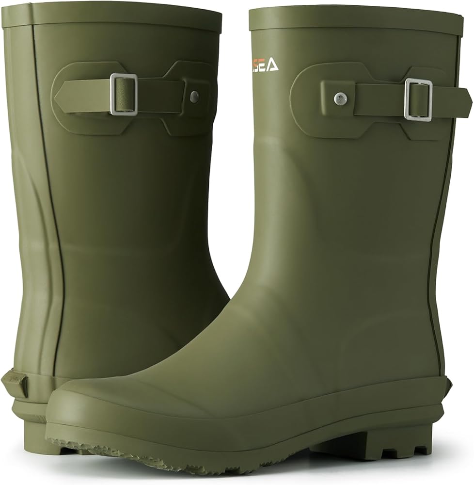 [After-Sales Service]: These rain boots are versatile for a variety of settings, such as the yard, garden, farm, music festivals, commuting to work, cleaning barns, chicken coops, garages, and stables. You can pair them with mid-calf socks or tuck in your pant legs for a comfortable and secure fit. HISEA aims to provide functional and fashionable rainboots to consumers. We love our buyers, One-year Quality Assurance backed by HISEA!
