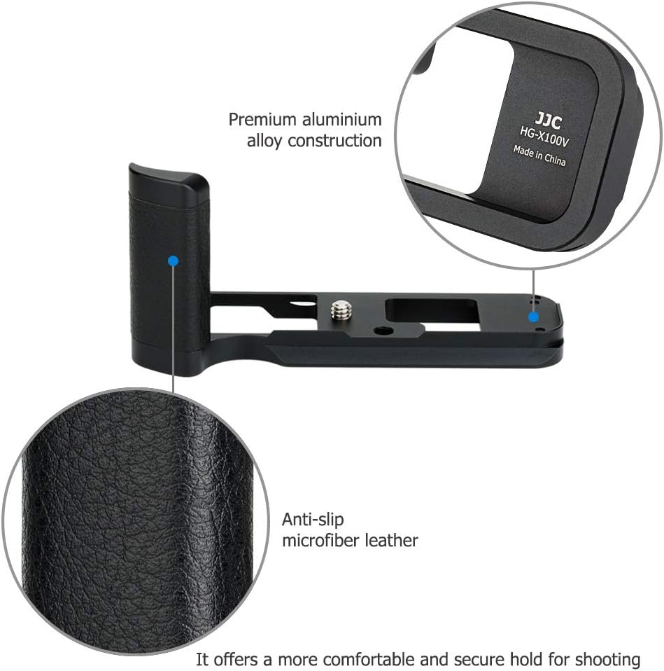 Made of high quality aluminium alloy, which is sturdy and durable. This kind of metal construction is also a perfect match to the camera body. The hand grip is anti-slip and can provide you with a kind of comfortable hand feeling due to the microfiber leather on its surface. After attaching the hand grip to your camera, you will enjoy a more comfortable and secure hold for your shooting. The large opening on the bottom allows you to remove your battery without taking off the whole grip. It also comes with a speaker hole for easily accessing to your camera speaker. The bottom of the hand grip adopts Arca Swiss Type quick release plate design and you can mount this hand grip to Arca Swiss System tripods directly. Or your can mount it to other tripods or devices via the 1/4"-20 tripod socket. Moreover, this hand grip allows you to connect the JJC hand strap or thumb grip (sold separately).