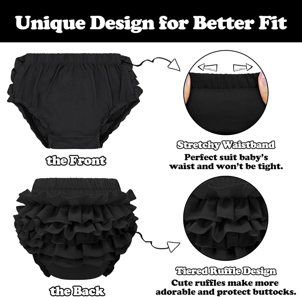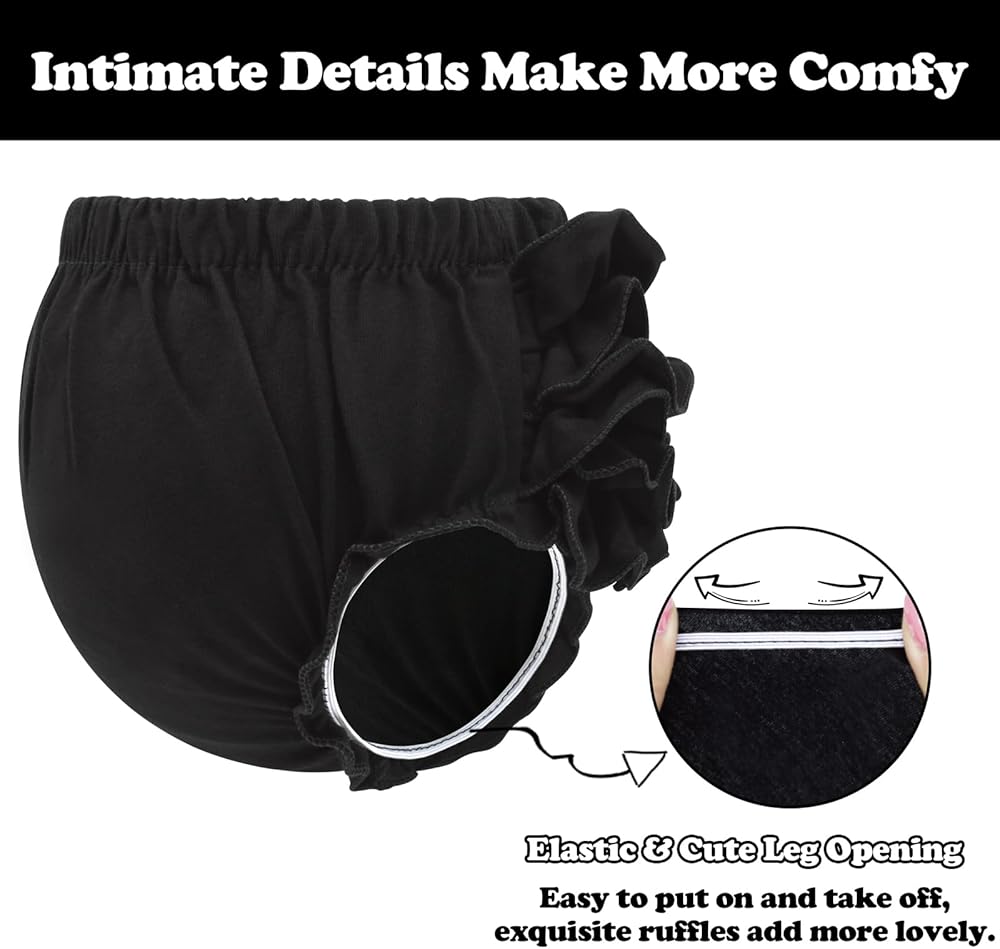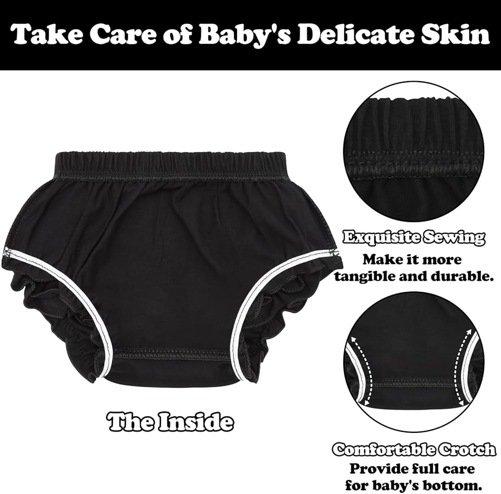 SUPERIOR SOFT & BREATHABLE: The baby bloomers are made of premium 100% cotton, which are not only soft, comfy and skin-friendly, but also benefit reducing friction and scratch. With the high moisture absorption and nice breathability, our diaper covers for girls can reduce stuffiness effectively, even lively and active babies can stay dry and comfortable. Besides, our baby girl bloomers are not easy to pill or fade, so they are enough durable to accompany your baby through many precious moments.