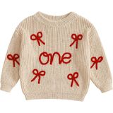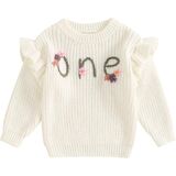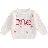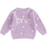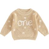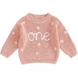Package includes: 1 * baby sweater, Toddler knit sweater boho sweet one birthday outfit girl sweater for toddler kids crewneck pullover sweatshirt, suitable for 1 year old kids wear. Fall winter pullover knit sweater tops, floral embroidery oversized sweatshirt warm clothing,