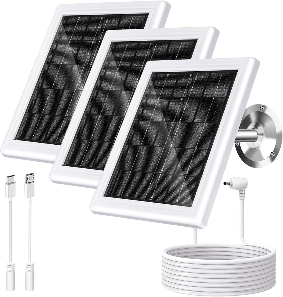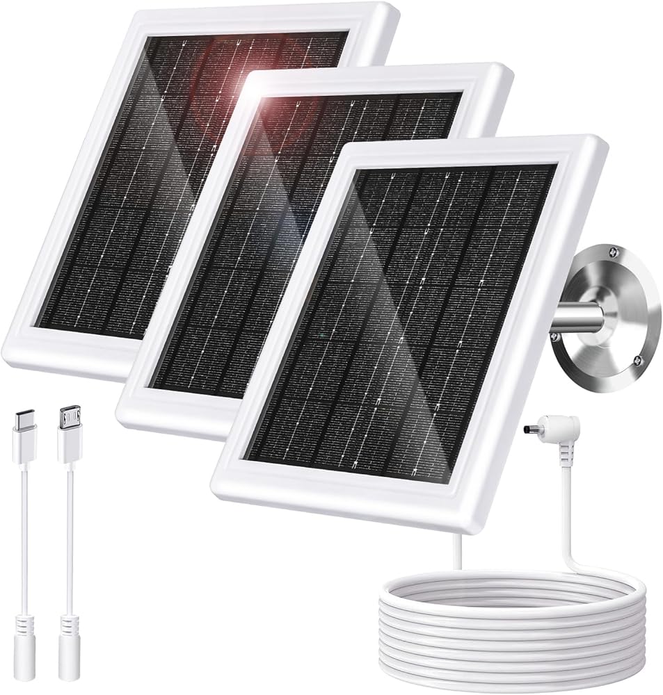 Ring Solar Panel Charger 5W Solar Panel for Security Camera Compatible for Ring Camera Waterproof Solar Panel with Type-C, Micro USB and DC Port Cable for Most Cameras