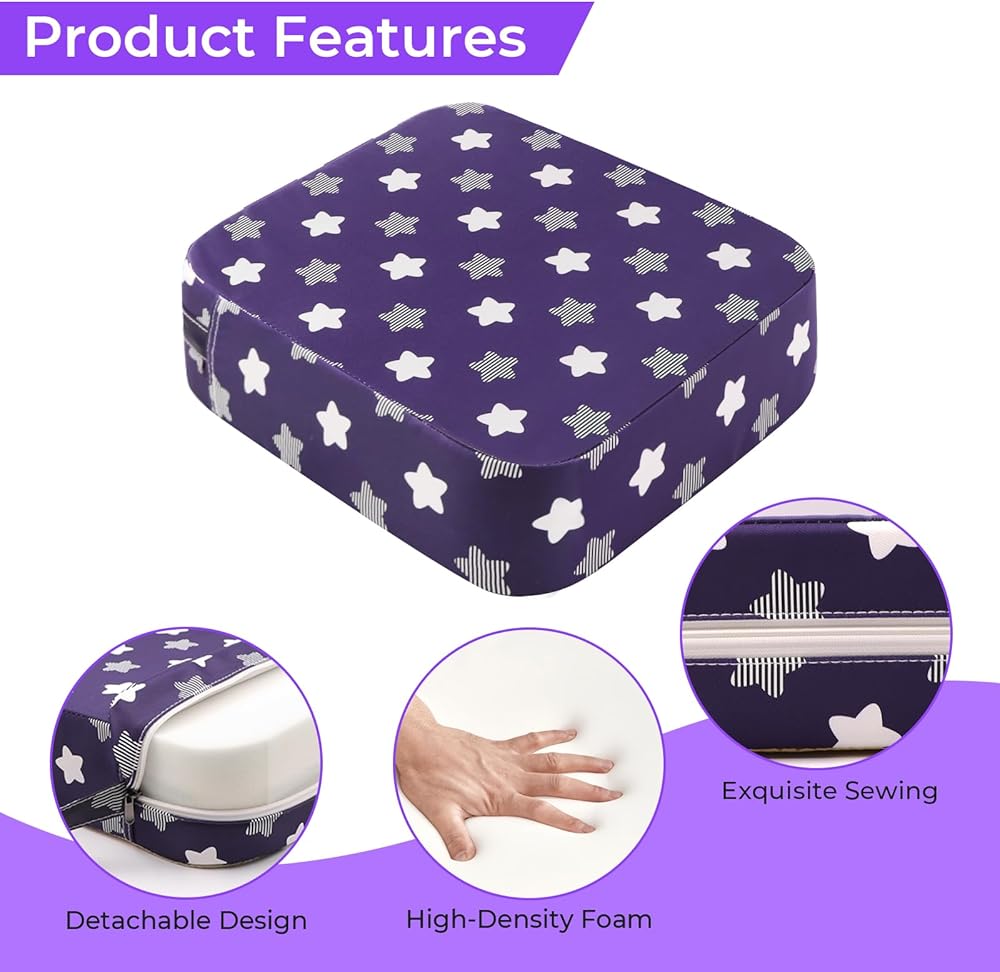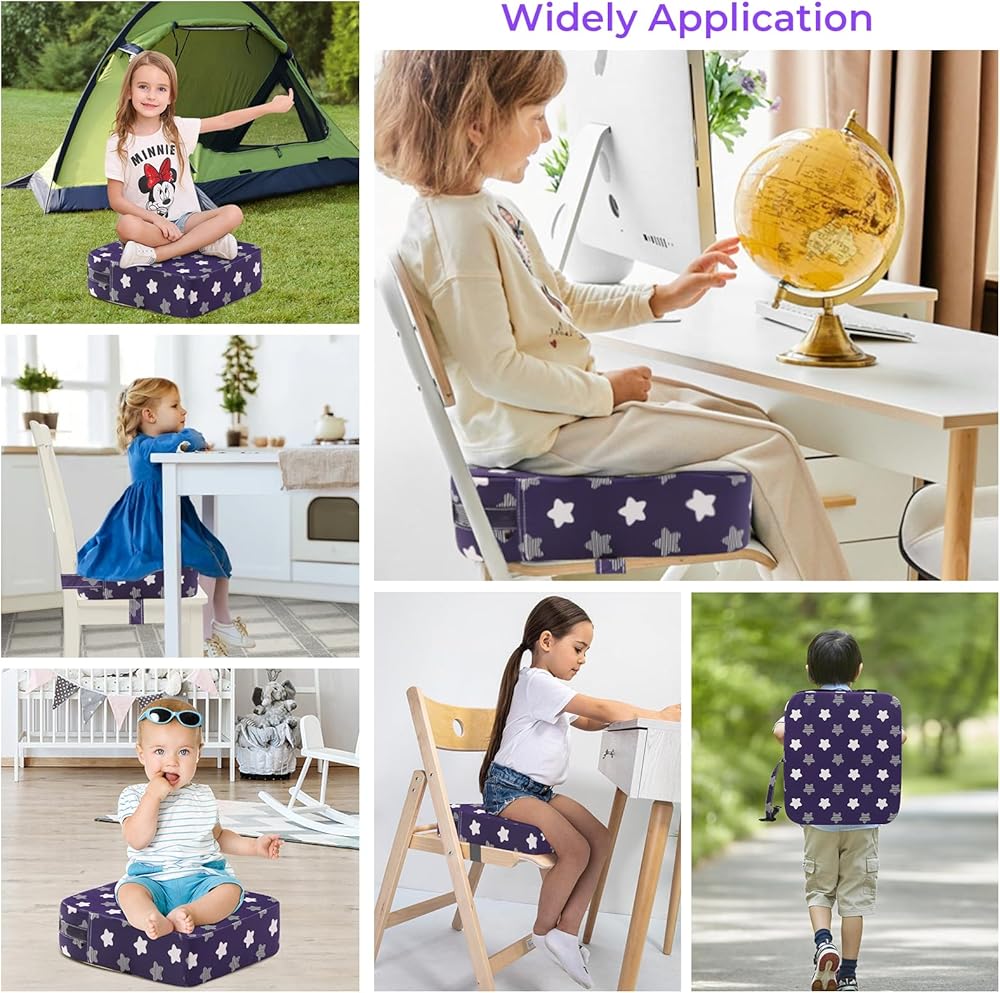 EXQUISITE APPEARANCE: Choose from a variety of pattern to suit your child's personality. Whether they love bright colors, cute animals, or classic designs, there's a style to fit every little one. The size of the booster cushion for kids is 14.2 x 12.6 x 3.8 inches, which is suitable for most dining chairs