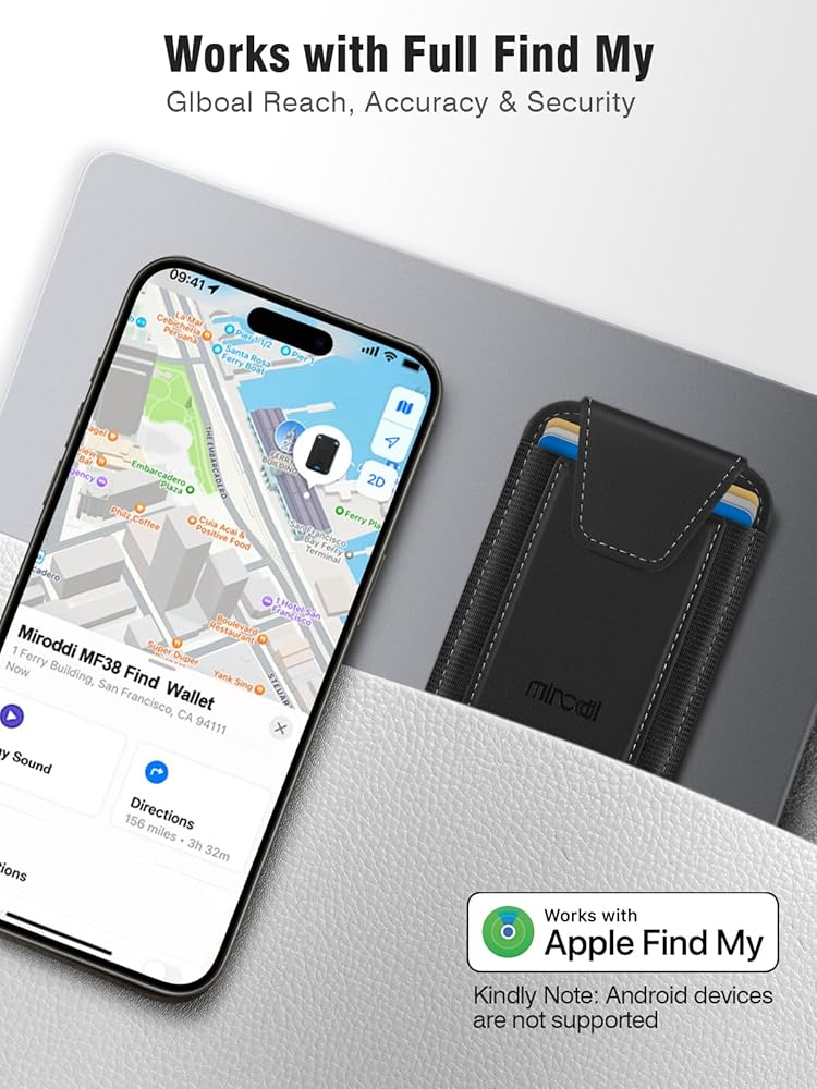 Miroddi for MagSafe Wallet, Works with Apple Find My, Stronger Magnetic Phone Wallet Tracker for iPhone 16/15/14/13/12 Series, Magnetic Card Holder with Privacy Flap, RFID Blocking, Fit 7 Cards, Black