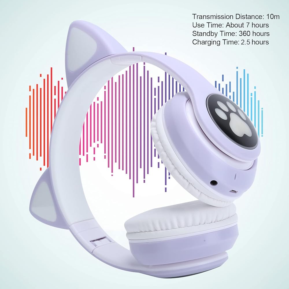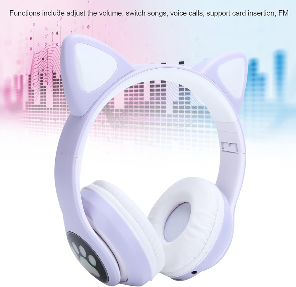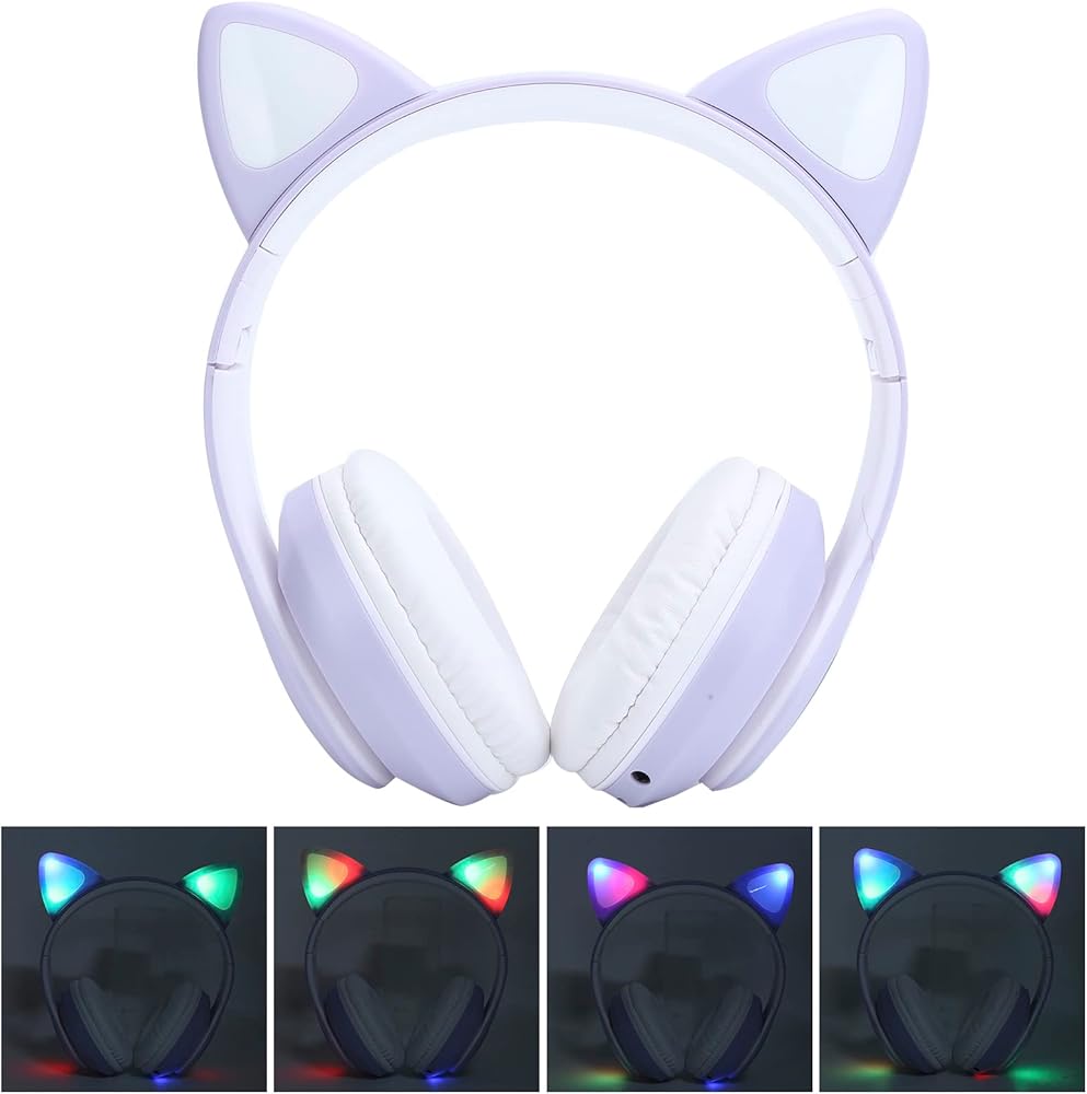 SYH&AQYE Cat Ear Bluetooth5.0 Headphones, LED Stereo Gaming Headset, 7H Battery Life Foldable Wireless Over Ear Headphones for Laptop Switch Games()