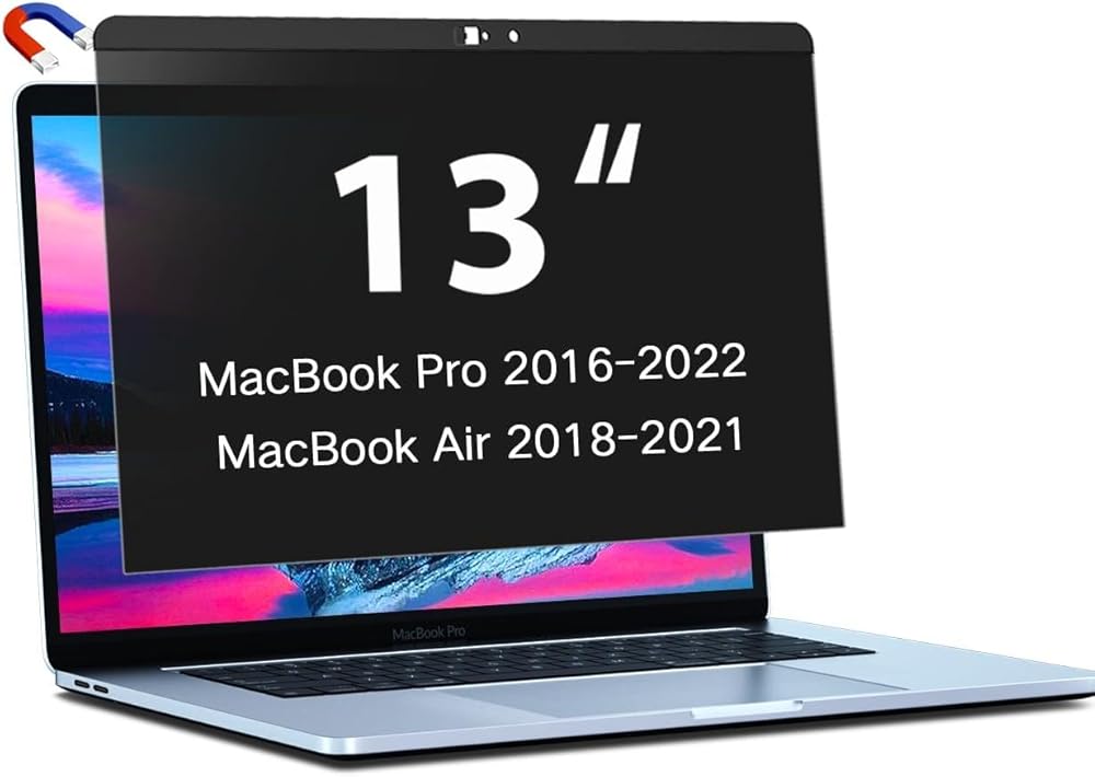 【Fits Mac 13.3" Screens】The magnetic privacy screen filter is designed exclusively for your MacBook Pro 13 Inch Year 2016, 2017, 2018, 2019, 2020, 2021, 2022, M1/ M2. (Model: A1708, A1706, A1989, A2159, A2251, A2289, A2338) and MacBook Air 13 Inch Year 2018, 2019, 2020, 2021, M1. (Model: A1932, A2179, A2337). Please check the screen size and model number before purchasing this privacy screen MacBook Pro 13 inch.
