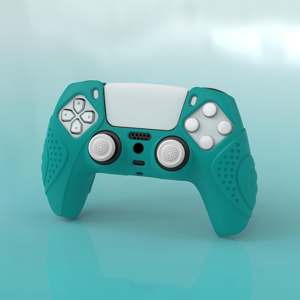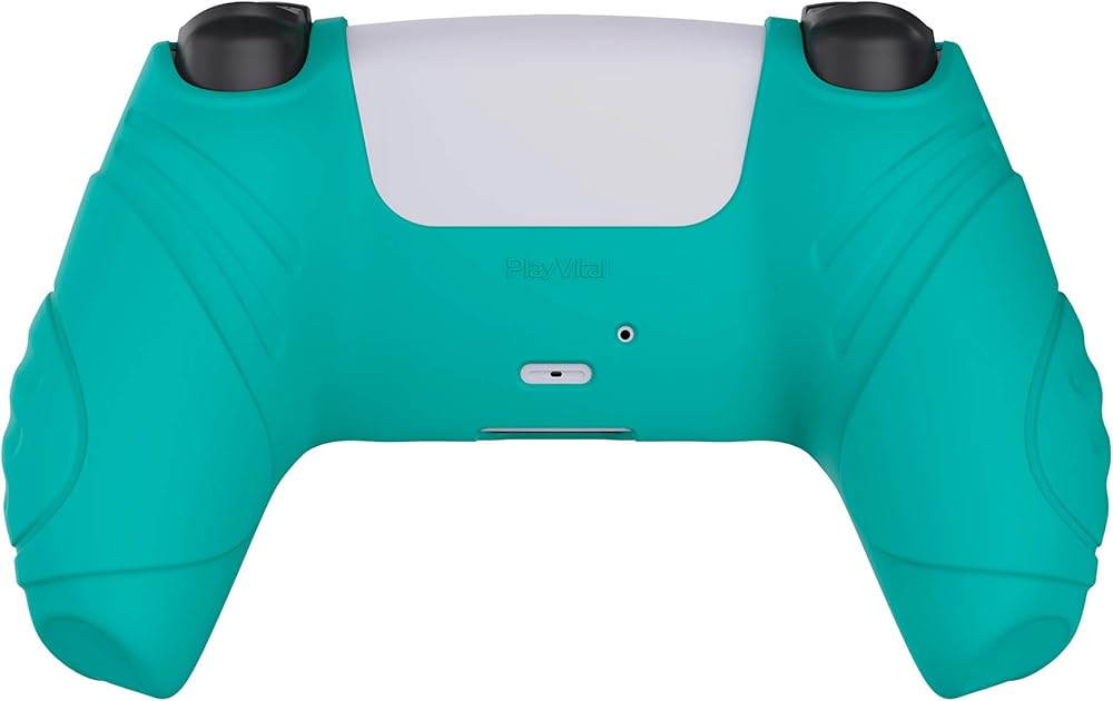 eXtremeRate PlayVital Guardian Edition Aqua Green Ergonomic Soft Anti-Slip Controller Silicone Case Cover for ps5, Rubber Protector Skins with White Joystick Caps for PS5 Controller