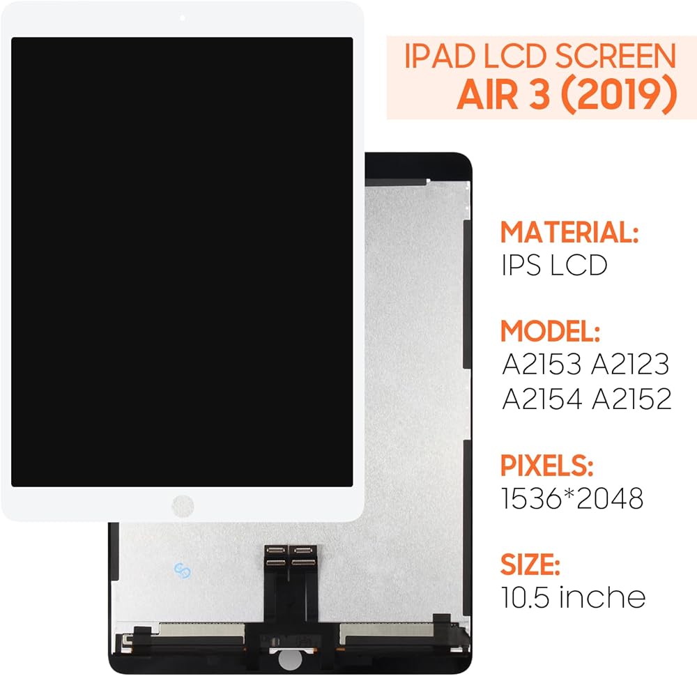 [Compatible Model]:(White without HomeButton)Suitable for iPad Air 3 2019 10.5 inch A2153 A2123 A2154 A2152 screen replacement.Please make sure you have the correct model number you need before purchasing. If you are not sure of your model, you can provide us with a picture of the flex cable on the back of the screen.We are not responsible for the cost when returning the wrong parcel purchased because of the buyer's reason.