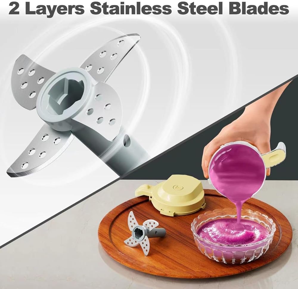 【Safe and Healthy】 The stirring cup is made of food-grade material, and the blades are made of food-grade stainless steel. Moms can confidently use it to prepare healthy and delicious food for their babies. Please note: with a dry burn protection feature, this baby puree maker automatically shuts off when it detects a dry burn situation. Additionally, it is equipped with a built-in safety lock, ensuring that the machine operates only when all components are correctly assembled.