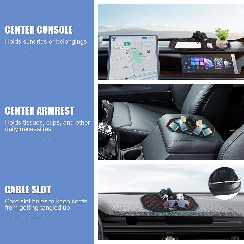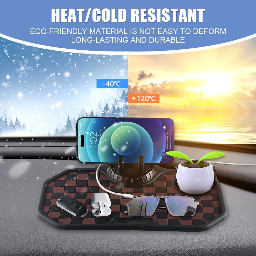 【HIGH QUALITY MATERIAL】: Made of high quality PVC soft material and ABS material, it is not afraid of high temperature sunlight exposure and low temperature weather, sturdy and resistant. The car anti-slip mat will not move under any rugged and bumpy road conditions and can be firmly linked to the dashboard.