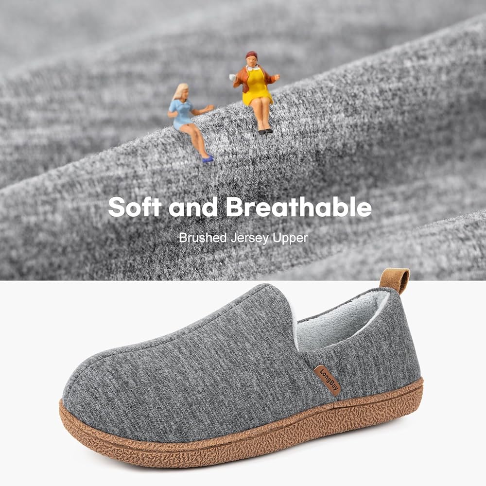 All-Season Softness: LongBay house shoes redefine comfort with a brushed jersey upper and coral fleece lining, providing a soft and breathable feel for year-round wear. Experience the ultimate in coziness, making these home slippers perfect for living room, bedroom, or office use