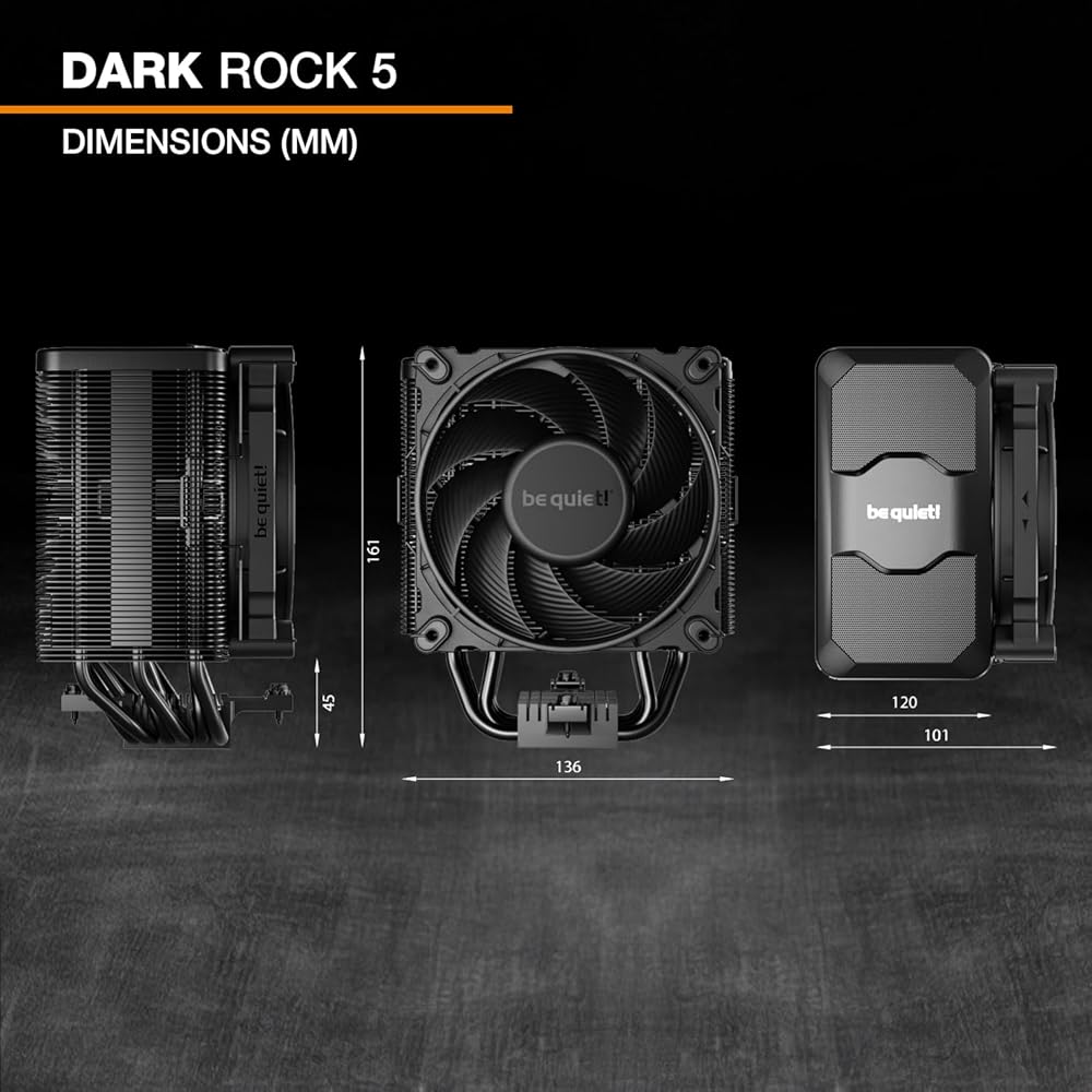 be quiet! Dark Rock 5 CPU air Cooler | Extremely high Cooling Performance | 6 high-Performance Heat Pipes | Silent Wings 4 120mm PWM Fan | high RAM and VRM Cooler Compatibility | BK035