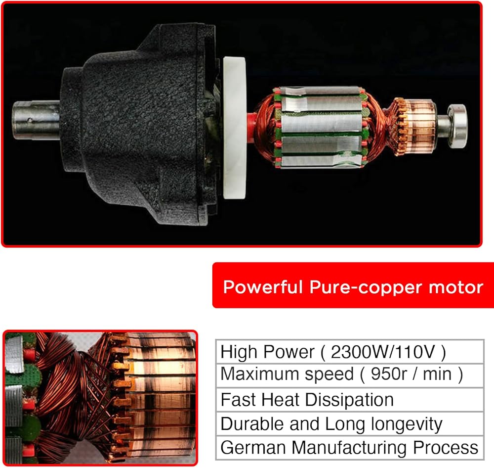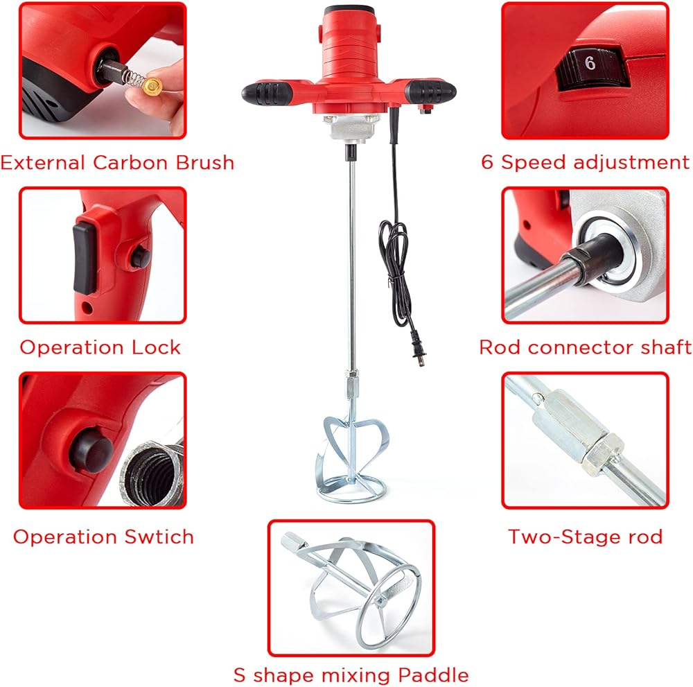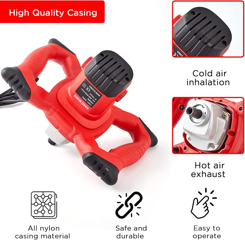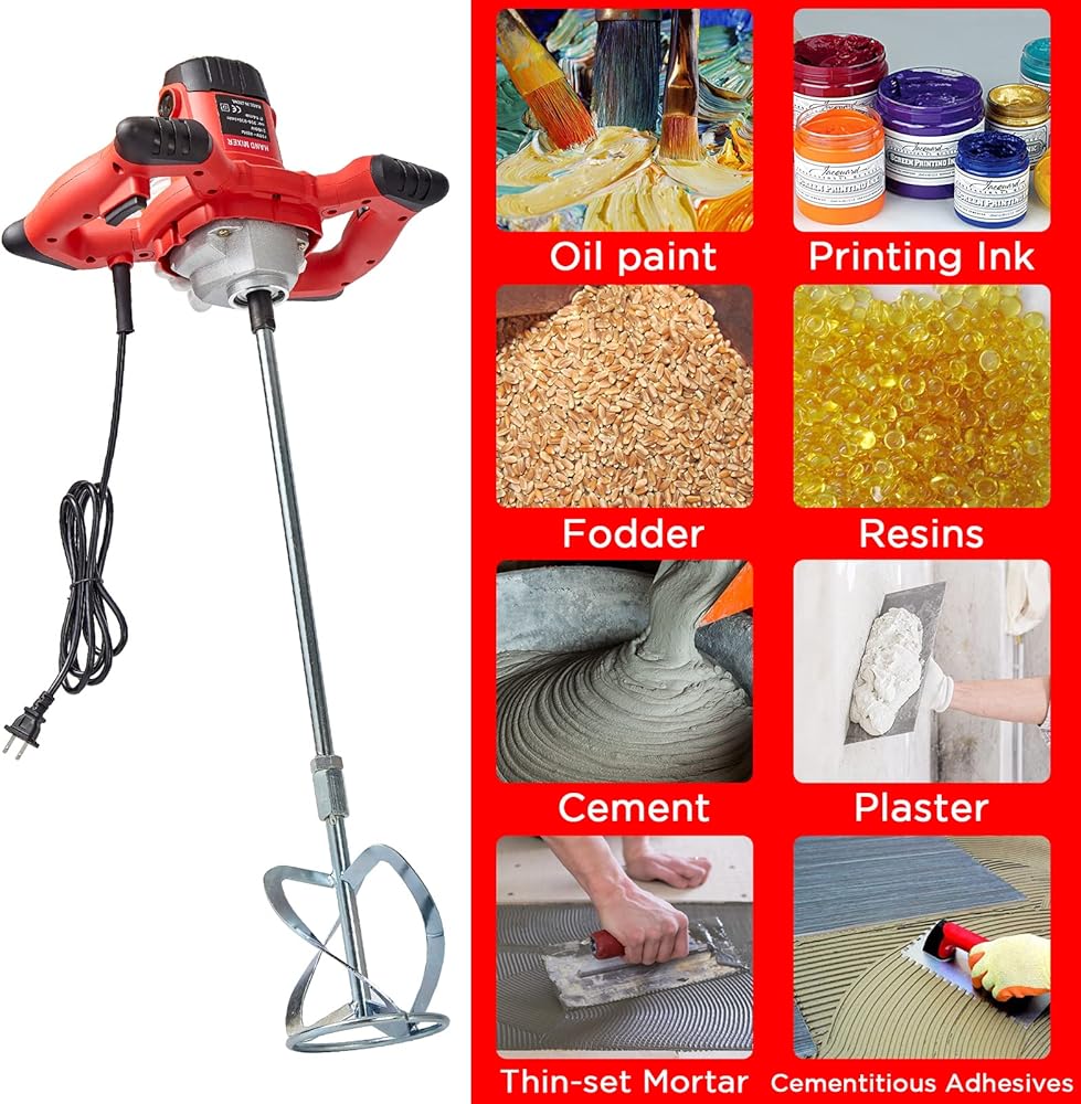 【Powerful Motor】The mud mixer cement mixer comes with 2300W/110V all-copper motor, which can offer a more efficient and stable stirring process.It is a safer and more durable mortar mixer. The max stirring speed can reach to 950r/min.