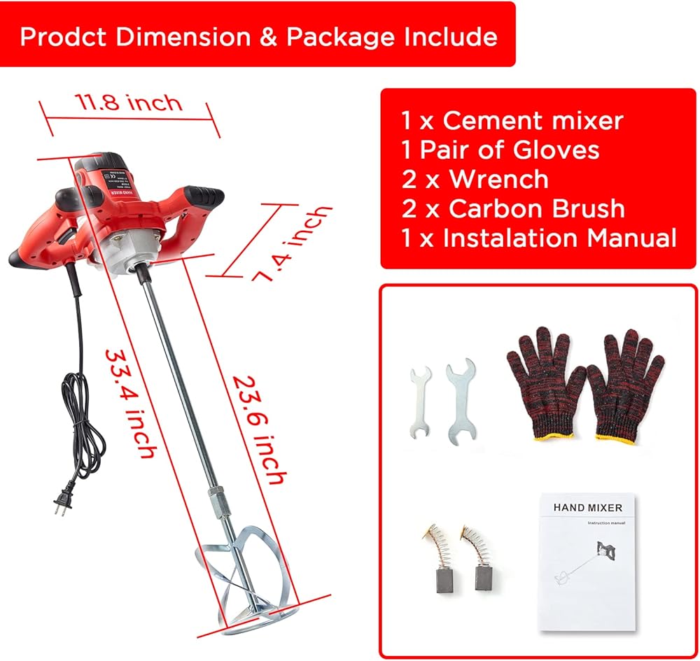 【You Will Receive 】1 x Mortar Mixer,1 x Mortar Mixer Shaft,1 x Helical Blade, 2 x carbon brush, 2 x wrench, 1 pair gloves,1 x Instruction Manual. you can contact us if you have any questions about quality problems, and we are willing to help you solve them within 24 hours.