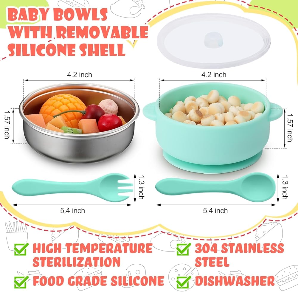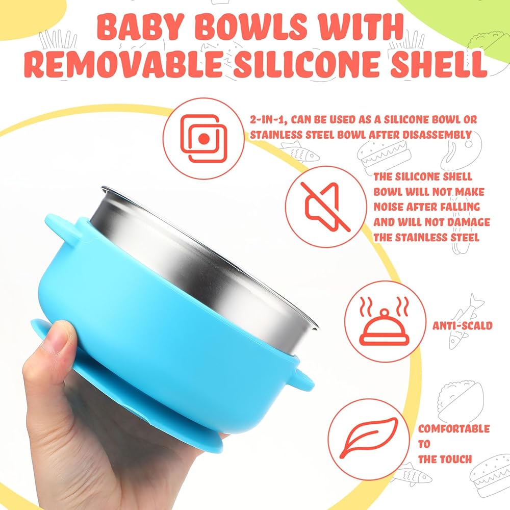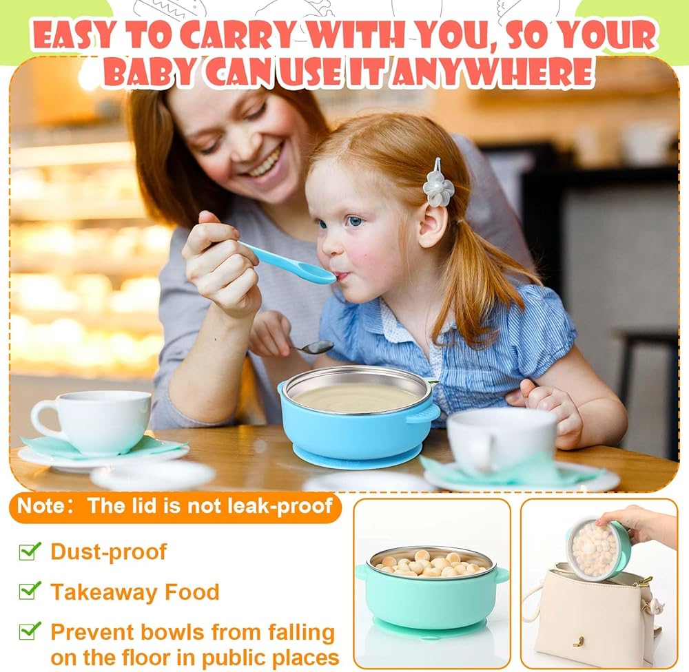 Our baby bowls with suction has important details that many of our competitors are missing. Each bowl includes, anti slip handles, spill proof rims, and effective but safe edges on the cutlery. This ensures a clean, safe and easy eating experience for you and your child.