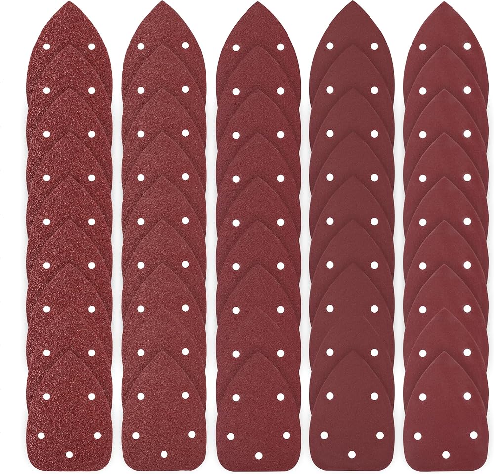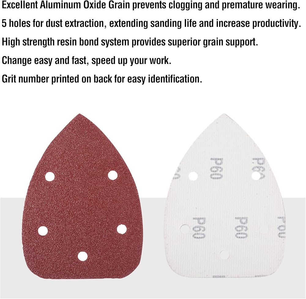 Material: Palm sander sandpapers are made of High-quality alumina abrasive, uniform in particle size, more durable and antistatic, ideal for sanding and polishing.