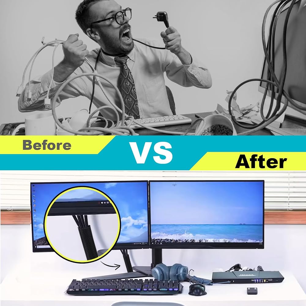 BUSOHA Wire Covers for Cords - 13ft Cord Protectors from Pets no chew,1/2inch Flexible Cable Management Sleeve,Cord Covers for Pets for USB, Power,Audio and Video Cords