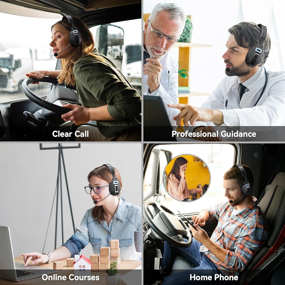 [Power Through Your Day] The trucker headset is designed for endurance. With a robust 400mAh battery, tailored for long-haul truckers and frequent travelers, this wireless headset ensures uninterrupted connectivity. Recharge fully in just 2 hours and enjoy an astonishing 60 hours of work or music playback. Say goodbye to battery anxiety and hello to uninterrupted communication and relaxation. Stay powered up and comfortable on the road or in the office, wherever your journey takes you.