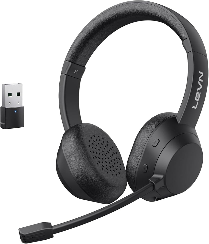 LEVN Wireless Headset, Wireless Headset with Mic for Work(Noise Cancelling), Wireless Headset for Work from Home/Office/Call Center/PC/Computer/Laptop/Teams/Zoom