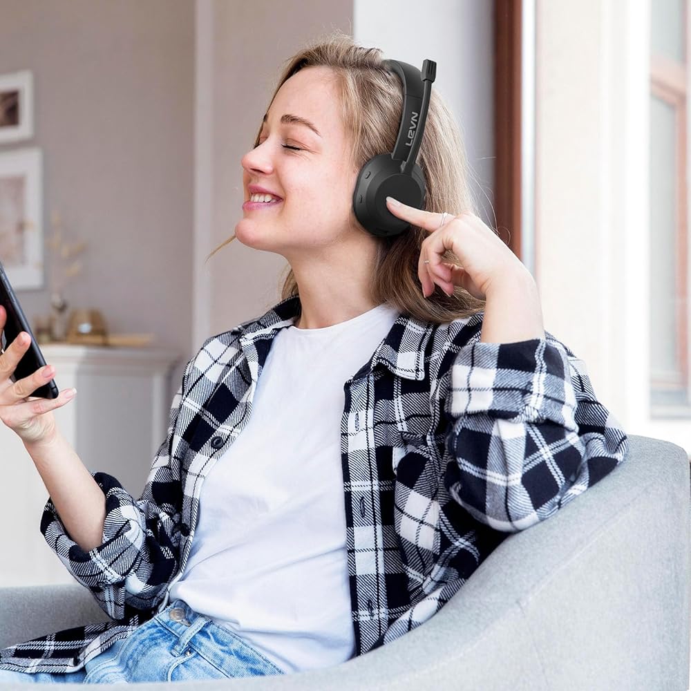 Various Office-ready Compatibility: The LEVN bluetooth headset with microphone seamlessly integrates with popular office software, making it a versatile tool for professional and personal use. Ideal for work calls, virtual meetings, and personal entertainment, this wireless headset with microphone enhances your productivity and enjoyment, whether you're engaged in business or unwinding with your favorite music