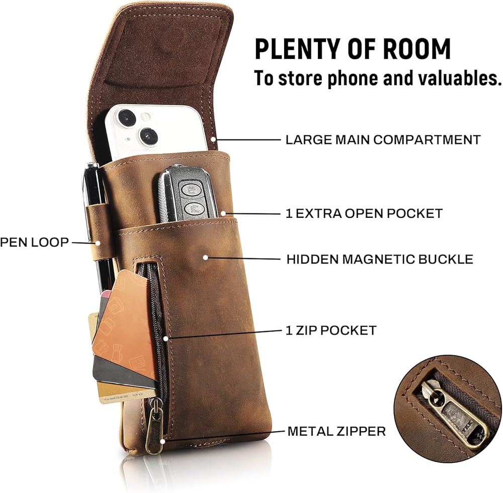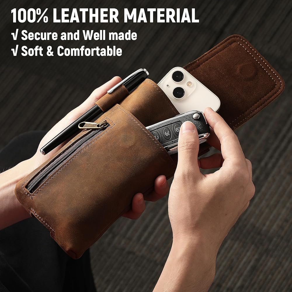Premium Craftsmanship: Crafted from genuine leather, this phone holster is durable, smooth, and soft, making it perfect for everyday use. Magnetic closure design allows easy access to your phone. An ideal gift for men, Fathers, Boyfriends, or husbands