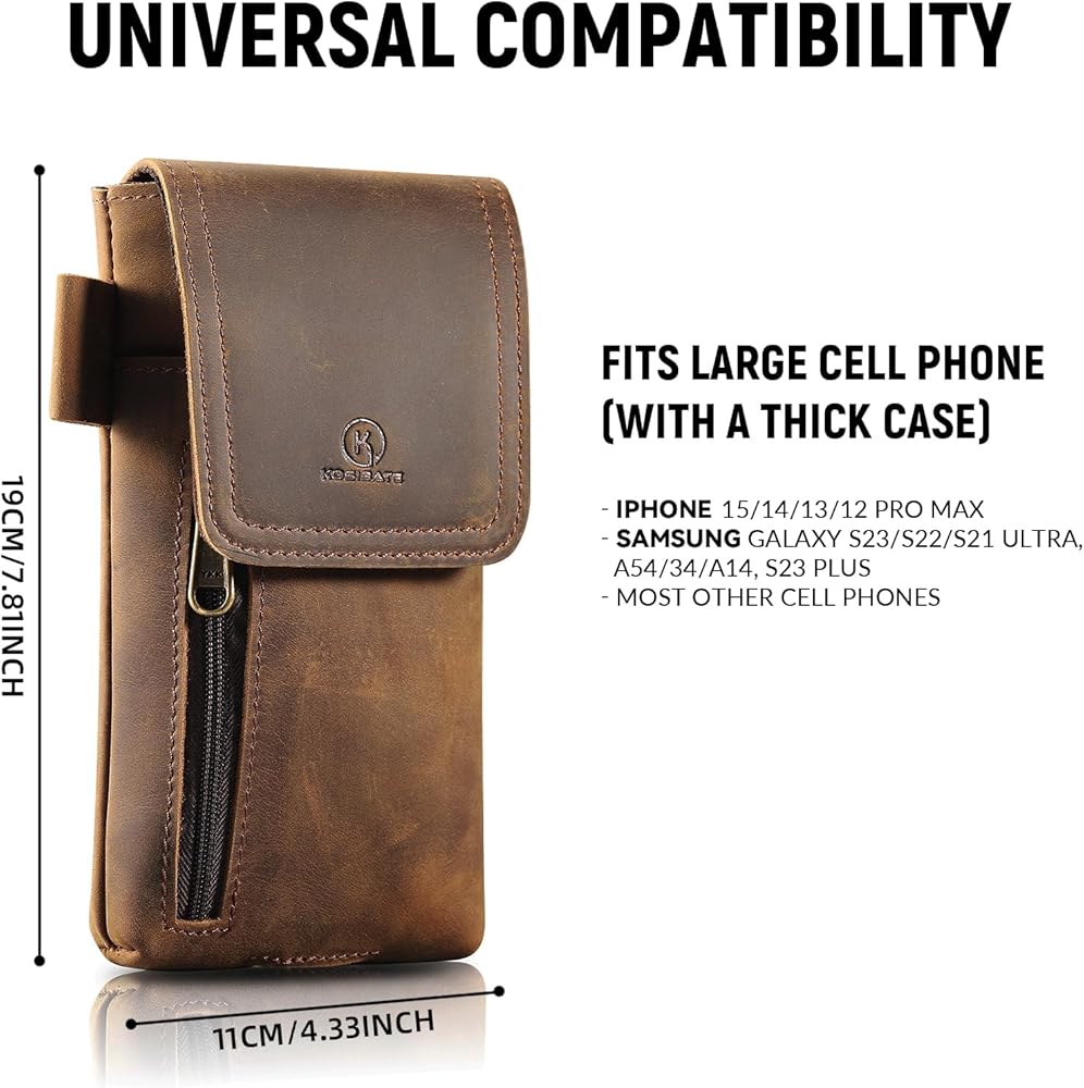 Universal Compatibility: Fits large cell phones, even with thick cases, and is compatible with iPhone 15/14/13/12 Pro Max, Samsung Galaxy S23/S22/S21 Ultra, A54/34/A14, S23 Plus, and many others