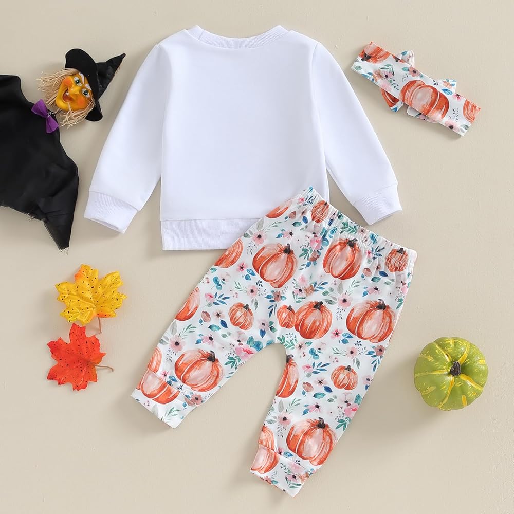 IDEAL GIFT: Baby girls 3pcs fall clothing ses, nice gifts for your baby, your baby will love you more. Package include: 1* long sleeve tops, 1* pants, 1* headband. Halloween baby clothes, my first birthday baby girl outfit.