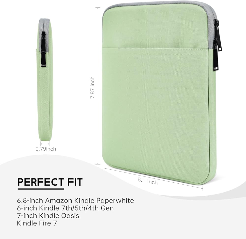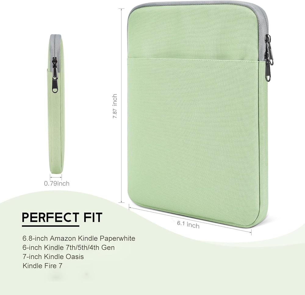 6-7 inch E-Reader Sleeve Case for Amazon Kindle Paperwhite 6.8, 6-inch Kindle, Fire 7 Tablet, Kobo Clara 2E eReader 6-in Tablet Travel Pouch Accessory Bag -Mint Green