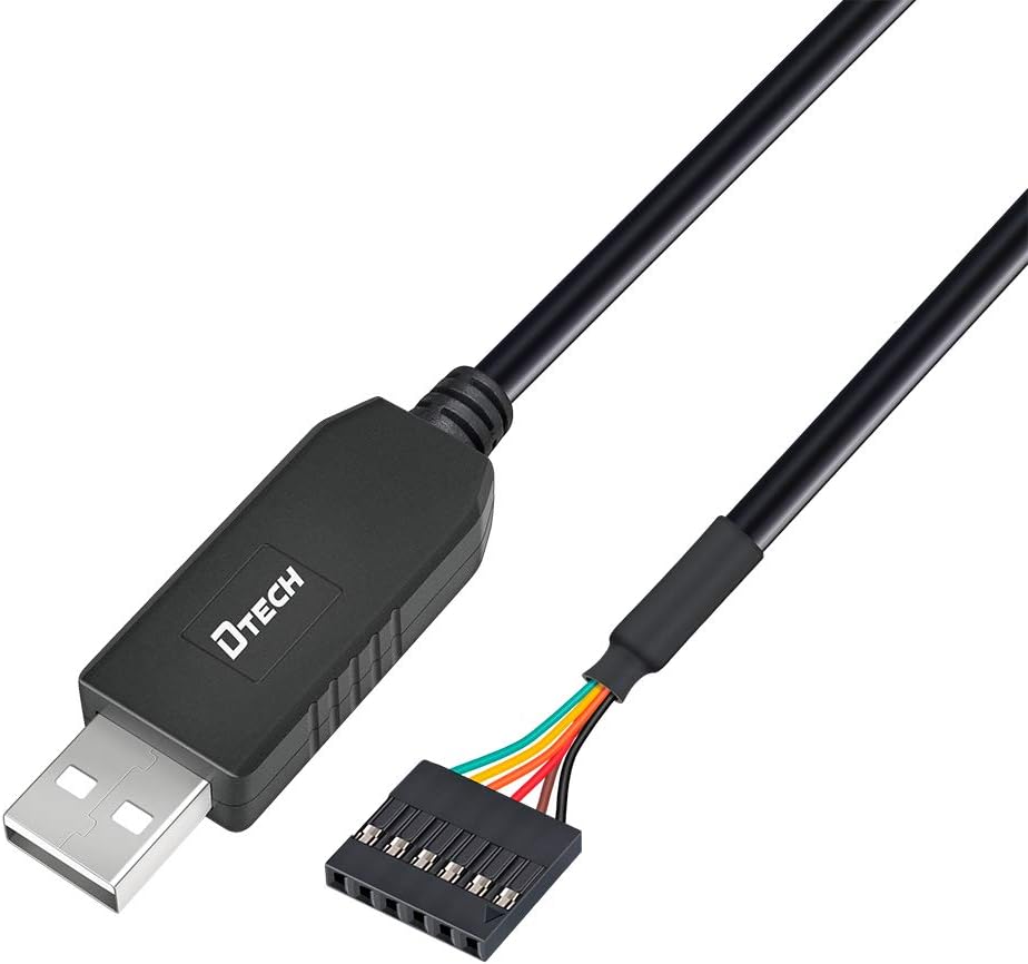 6-Foot USB TTL serial adapter built with FT232RL chip for 3.3V logic level serial communication (rx, tx and GND)