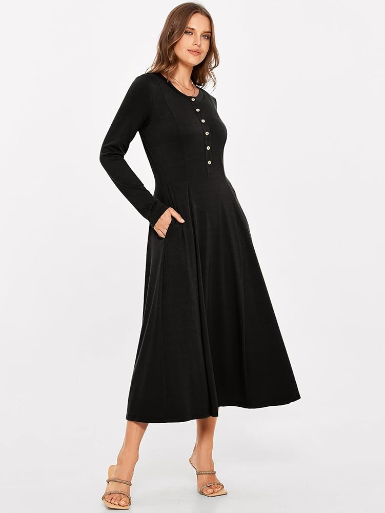 【Style】The rib knit dress is basic and simplee. It is made from premium cotton,this midi dress has regular long sleeve and henley neck that make it the perfect wear with anything elegant dress in a seasonless color,Suitable for fall and winter as dress.