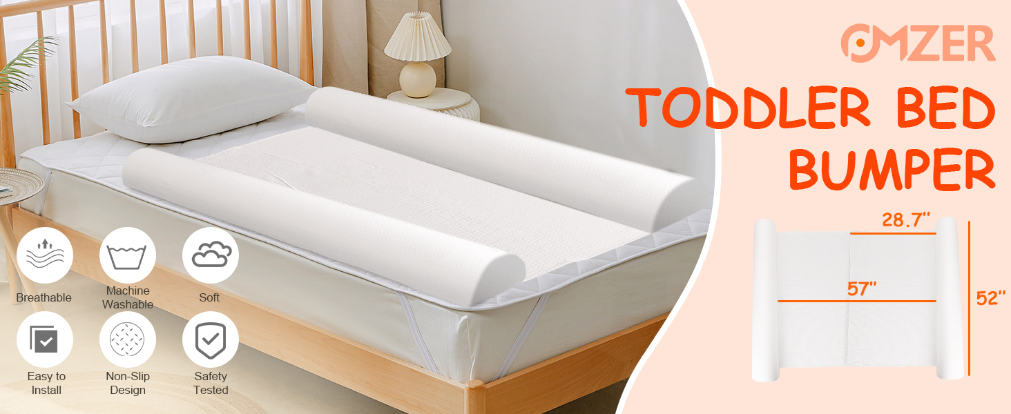 Better Anti-Slip Design - Omzer bed rail with flap is made of non-slip plastic cloth at the bottom, and the cover of the bumper is designed with extension. This allows the bed rail to better secure to the bed by using the toddler's weight and the friction of the bed bumper and mattres, so parents no longer have to worry about the bumper shifting throughout the night!