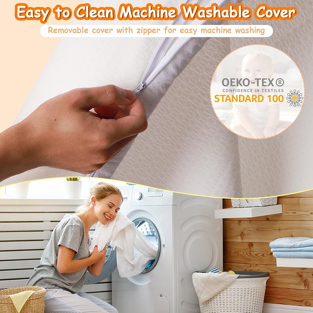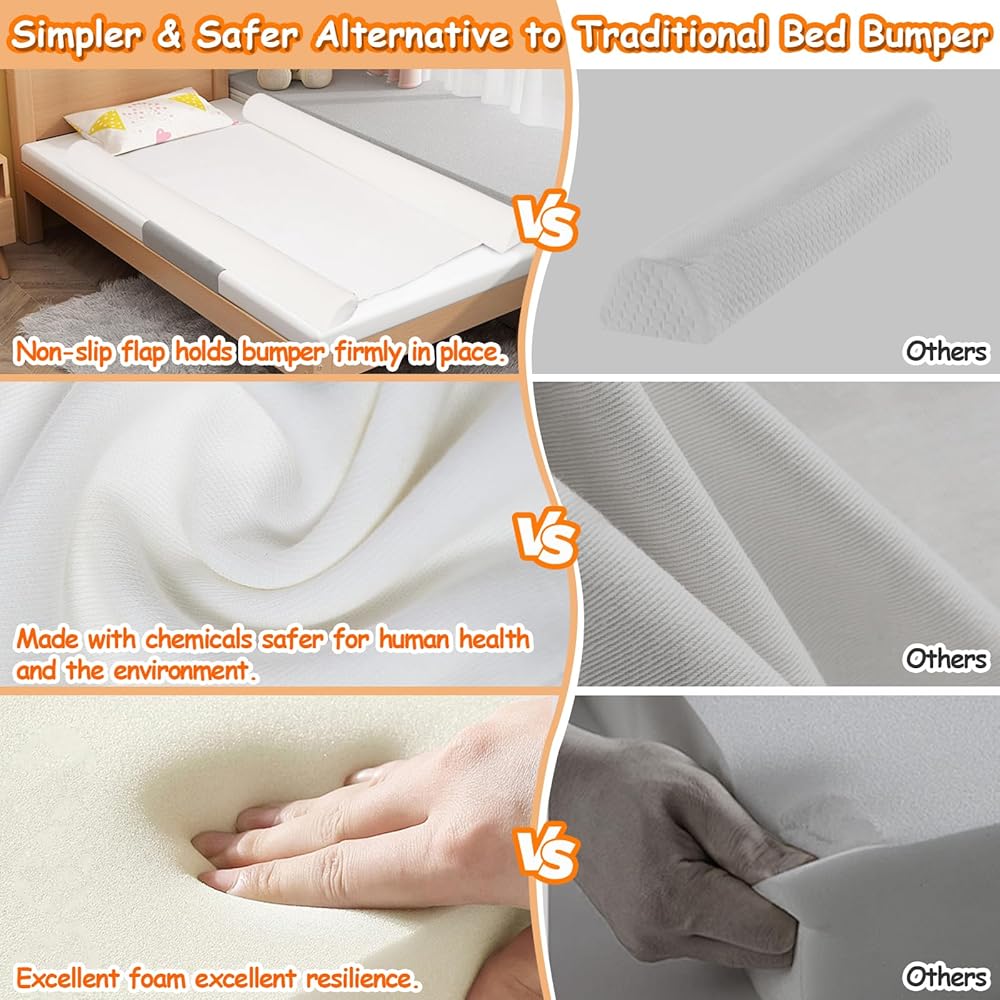 Premium Foam & Breathable Cover - The toddler bed rails made of soft foam are safe and comfortable while providing your child with plenty of room to stretch out and safety protection while sleeping.The ultra-soft zippered bed bumper cover meets the OEKO-TEX Standard 100 requirements, is breathable and skin-friendly, and can be removed and machine-washed at any time.