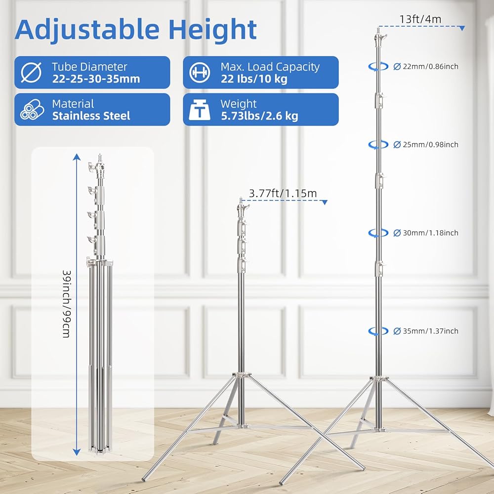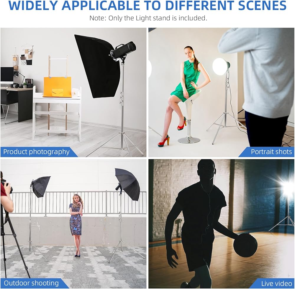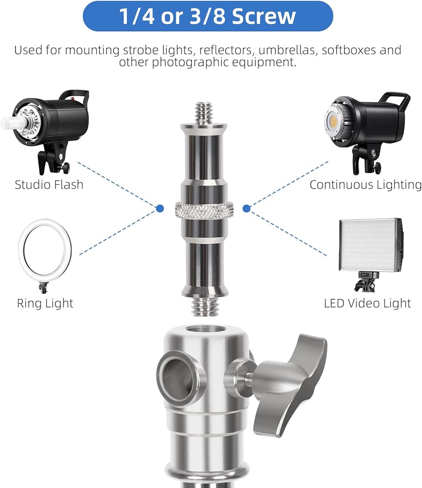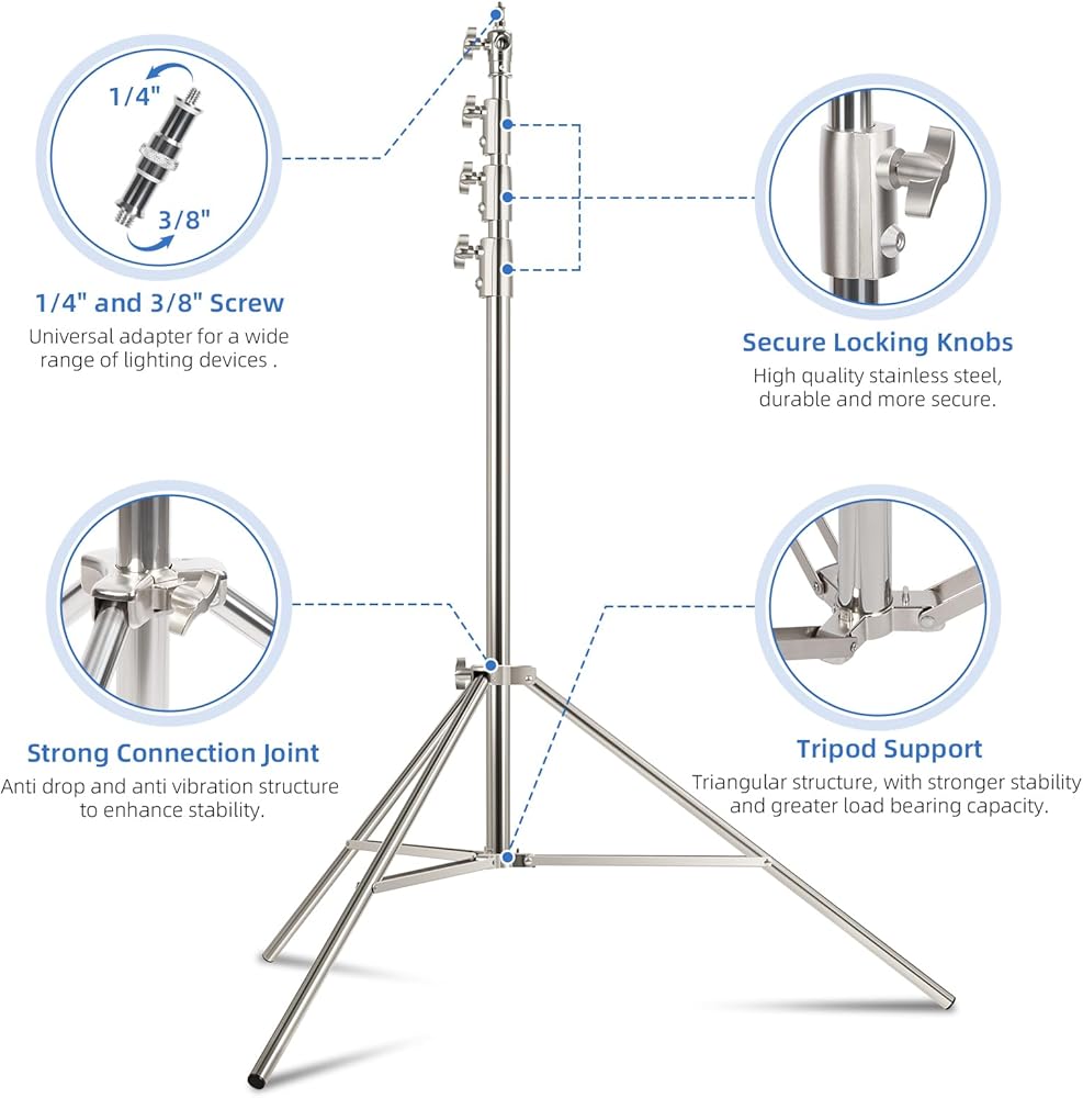 【Various Uses】The portable stainless steel light stand is suitable for indoor and outdoor shooting, and comes with a 1/4 inch to 3/8 inch universal adapter, making the light stand suitable for most photographic equipment.