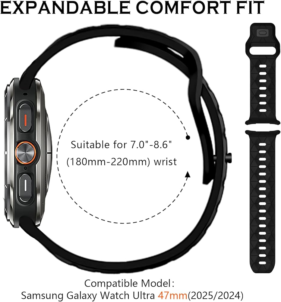 【Compatible Models】: Only Compatible for Samsung Galaxy Watch Ultra 47mm. NOTE:Please check your watch model before ordering for avoiding a wrong size. Fits wrist sizes 5.5"-8.7".